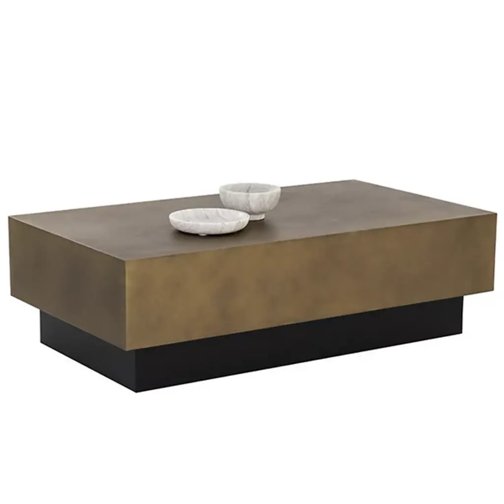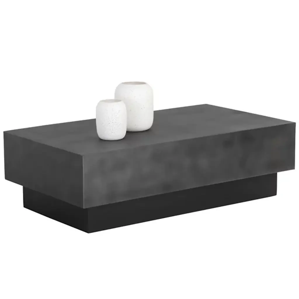 The Blakely Coffee Table from Sunpan features a contemporary design that commands attention. Crafted in India by skilled local artisans, it features a sleek steel top and a matte black powder-coated steel base. The refined craftsmanship shines through in every detail, embracing the unique imperfections inherent to handmade pieces. Subtle fissures, markings, and variations in color and shape are celebrated as distinctive characteristics, ensuring each table is a truly one-of-a-kind statement piece that adds bold sophistication to any space.