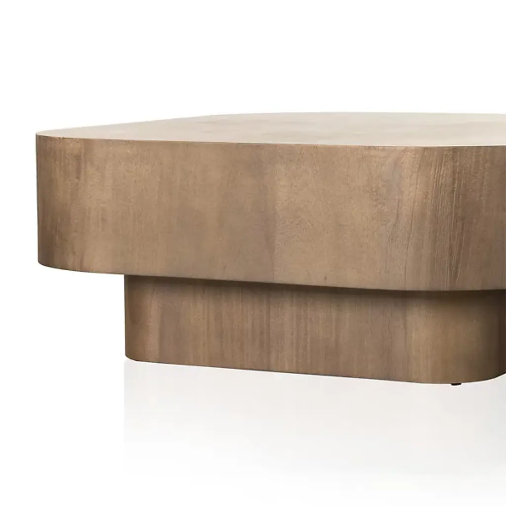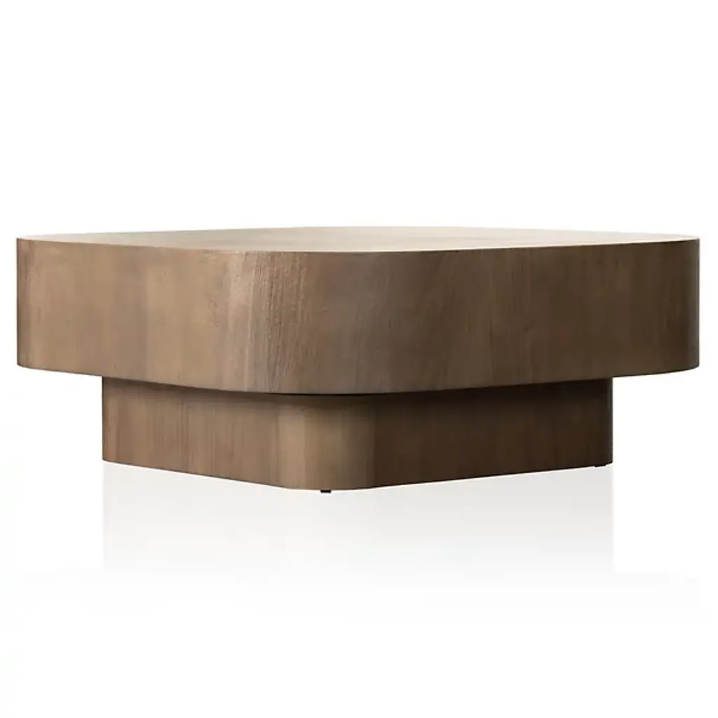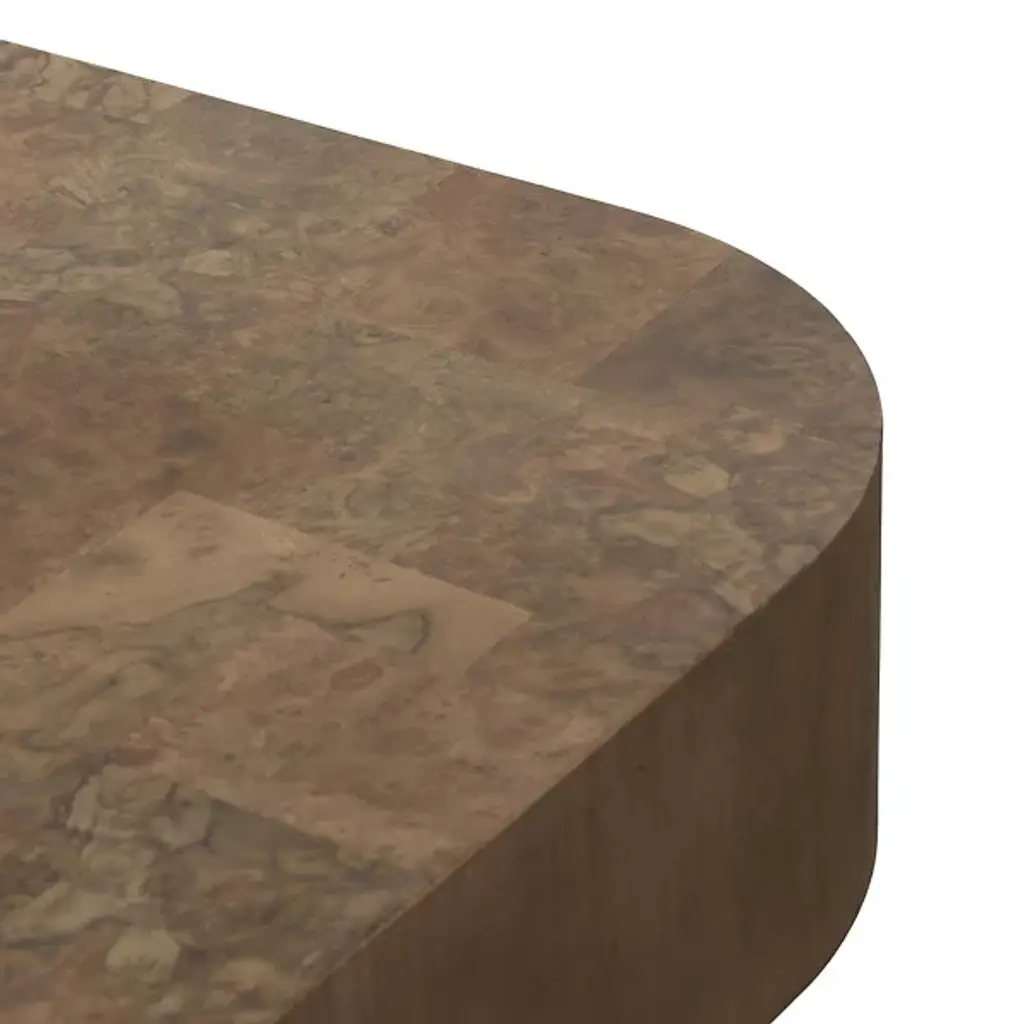 The Blanco Coffee Table from Four Hands is a versatile centerpiece that can anchor various interior styles, from contemporary to transitional. The soft-squared tabletop showcases a captivating patchwork pattern of warm-toned walnut burl veneer, bringing dynamic visual interest to your living space and creating a sense of movement. The sides are finished with veneer, maintaining the table's cohesive look, while an inset base adds some lightness to the overall design.