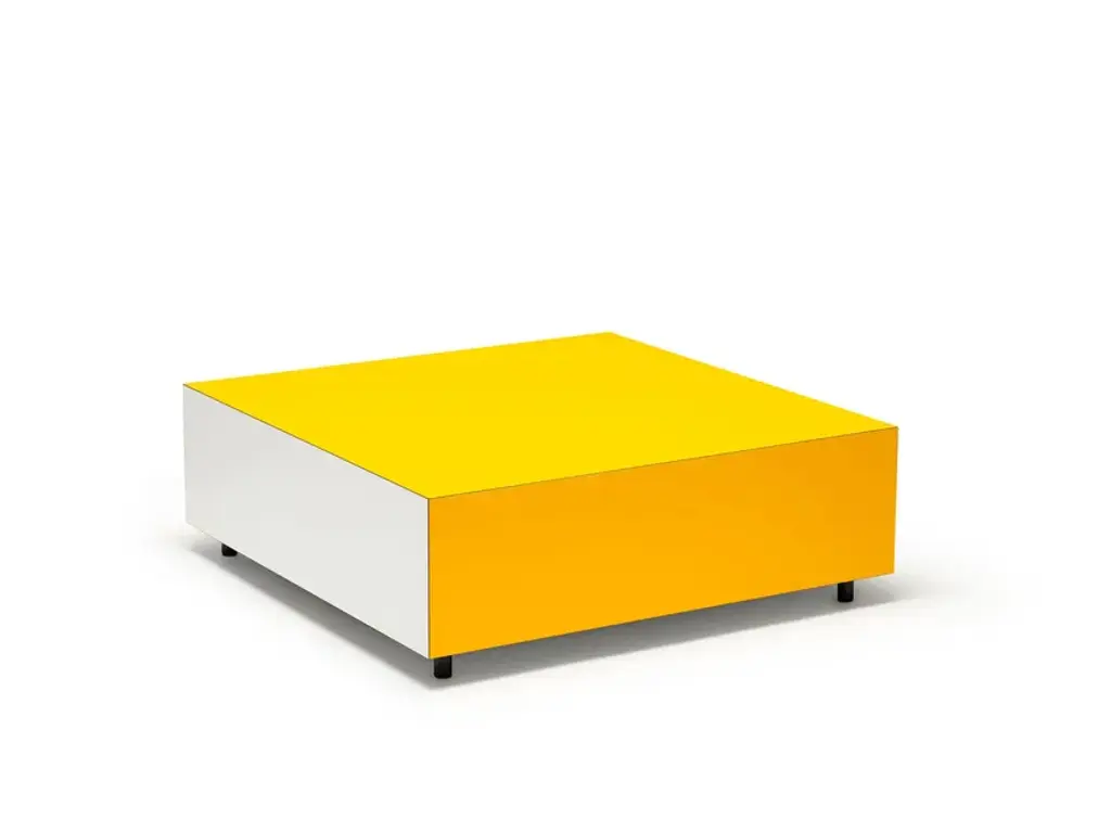 BLOC coffee tables are colorful plywood boxes with contrasting high-pressure laminate finishes. They come with black dowel feet as standard and can be paired with swivel castor wheels (optional) and a soft-open storage drawer (optional).Hidden within the plywood structure is a drawer with a soft-open mechanism, seamlessly disguised by the block colors of the outer surfaces. Available in three sizes, the design is highly versatile, adding a playful touch and a compact graphic character to a wide range of interior environments, from home to office.Materials:Birch plywood, high-pressure laminate, soft-close drawer slides, black-stained oak (legs), stainless steel ball bearings, and nylon castors (optional).Color Combinations:Bright red, burgundy, clayBottle green, pine green, signal greenGrey, burnt orange, pale greyZinc yellow, signal yellow, pale grey