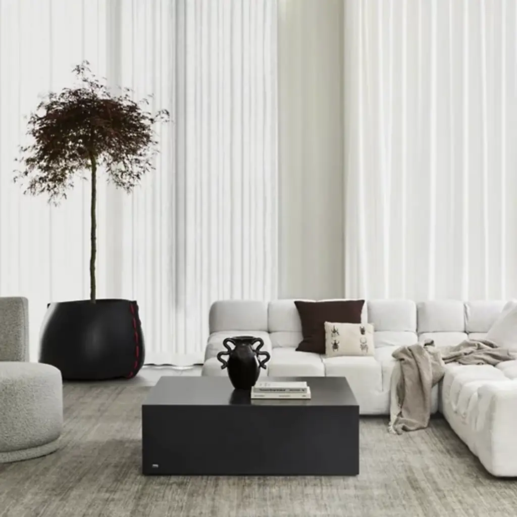 The Bloc L4 Indoor/Outdoor Coffee Table from Blinde Design presents a square in concrete composite construction with equal dimensions that create balanced geometry. This format anchors seating arrangements differently than rectangular alternatives, while discrete leveling feet ensure stability and preserve clean lines. The square works well for intimate gatherings and focused conversation areas. Weather-resistant concrete handles seasonal changes without compromise, and its compact footprint makes efficient use of space while providing adequate surface area for practical needs.
