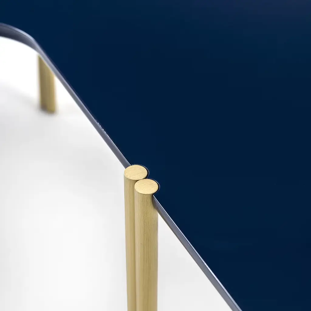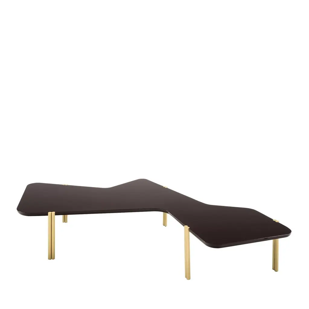 Incorporating an abstract and natural aesthetic inspired by Dadaist artist Hans Arp, this captivating coffee table is a stylish way to add interest and a distinctive touch in any living room, office interior and even children's room. The irregularly shaped top is made of wood with an elegant cobalt lacquered finish and five legs made of double brass cylinders. This remarkable piece is part of the Jean collection of stackable tables that offer style and functionality introduced at the Salone del Mobile event during 2018 Milan Design Week.