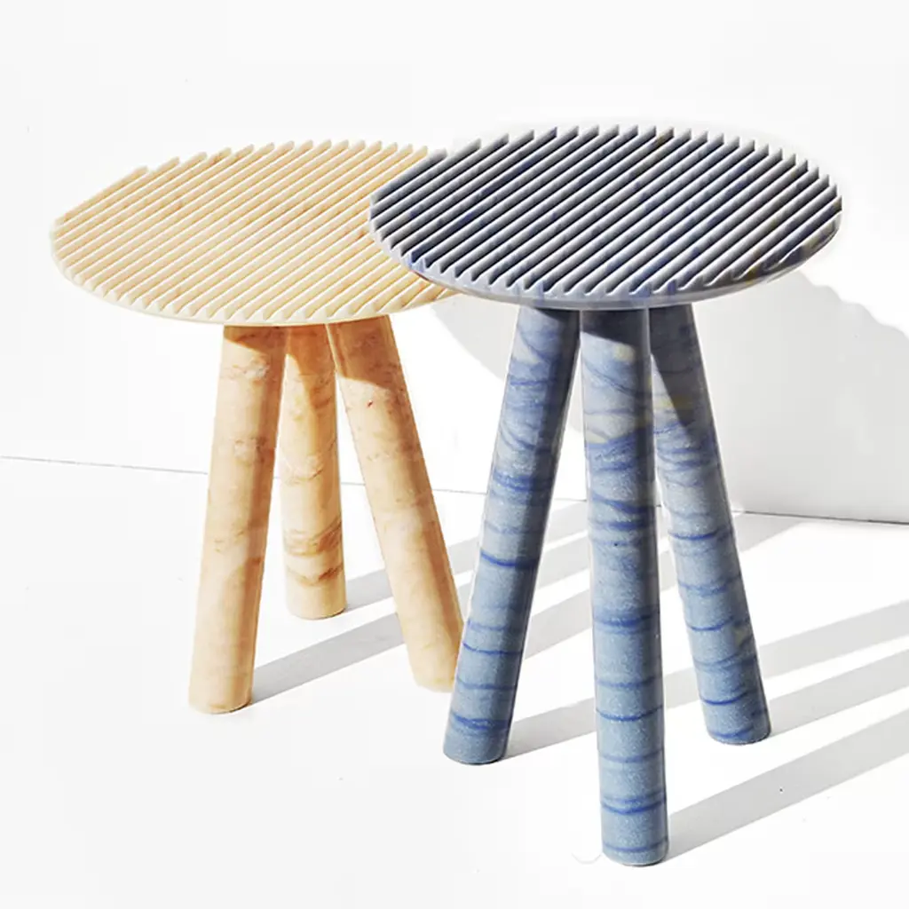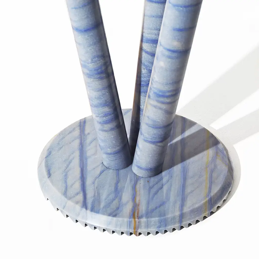 This elegant marble coffee table by designer Patricia Urquiola is made from blue and white Azul Macaubas marble for a unique look. The table top has a ridged texture and three legs, for a piece that is sure to add elegant and individuality to any room.