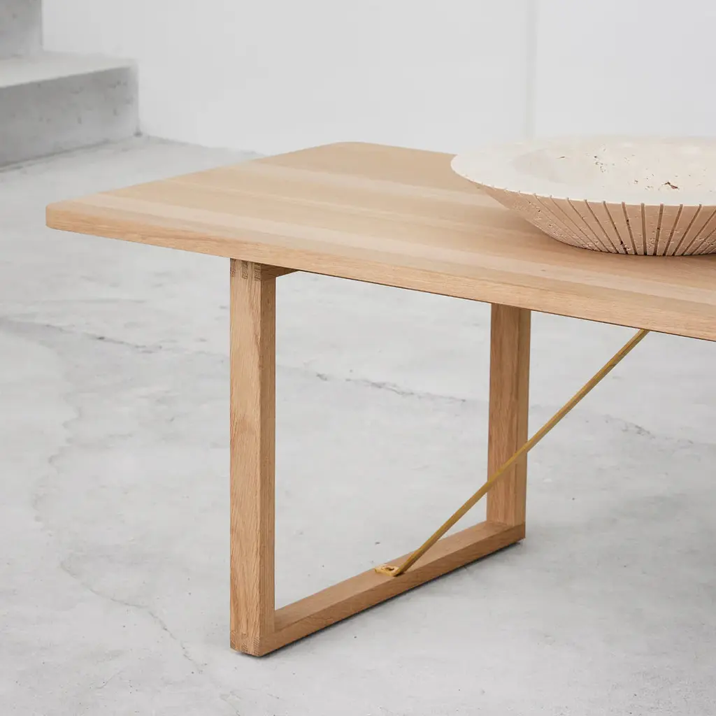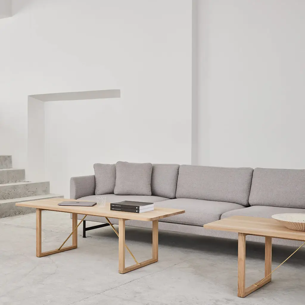 The BM67 Coffee Table has an understated authenticity that's appealing to the modern consumer. Designed by Borge Mogensen in 1956. In classic Borge Mogensen style, the BM67 Coffee Table is a functionally-driven design with very few components. Starting with a solid wood frame and a sledge base, where the exposed construction underneath is part of its appeal – featuring stretchers in raw brass, which will patinate beautifully over time. It all reflects Mogensen's conviction that simple, unadorned designs set the stage for the beauty that lies in the materials. In this case, wood and brass. And that the ordinary can be made extraordinary.