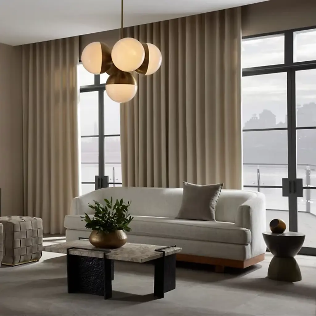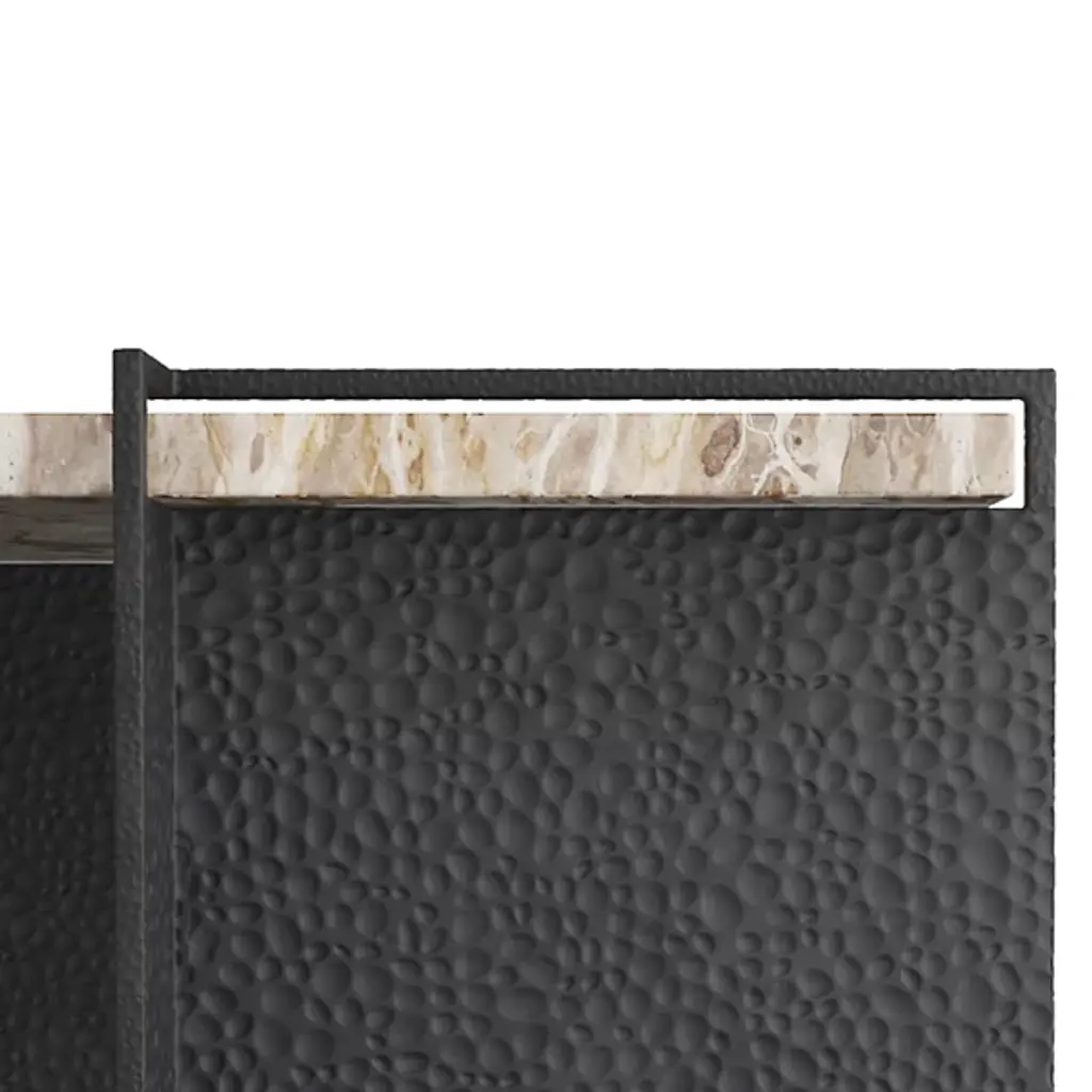 The Boda Cocktail Table from Arteriors brings an element of creativity to your cocktail hour. Your table features a marble composition, adding a touch of glamour to your space while maintaining durability. Bonda’s tabletop is rectangularly shaped for a streamlined look. What sets Bonda apart is its open framework that elegantly wraps around the table’s edges, combining style and functionality. Use it as an accent piece or as a spot for socializing.