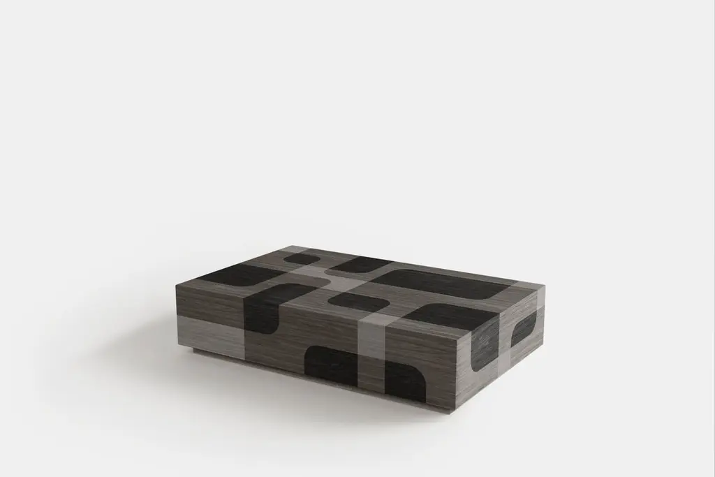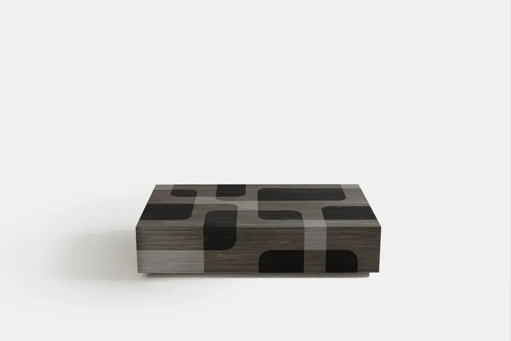 Bodega Rectangular Coffee Table In Black Wood Marquetry Veneer By Joel Escalona