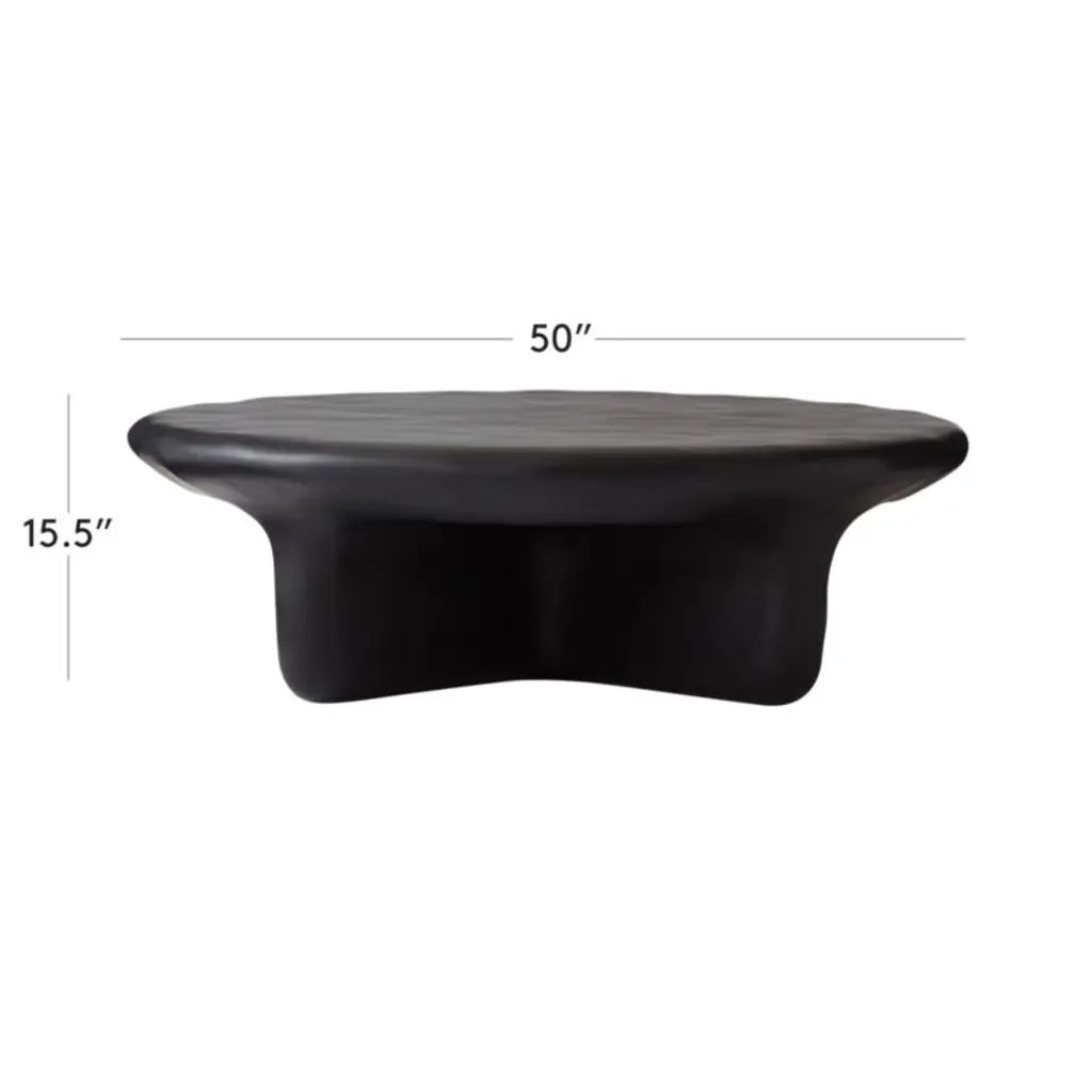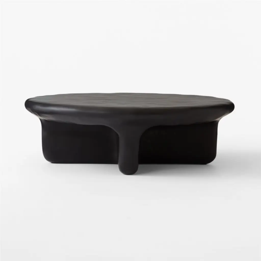Designed by Melbourne-based VUUE, bold cast resin coffee table stands as a postmodern work of art. The amorphous silhouette evokes a hand-molded look, while the matte black finish accentuates the highs and lows of the undulating surface created during the casting process. CB2 exclusive.