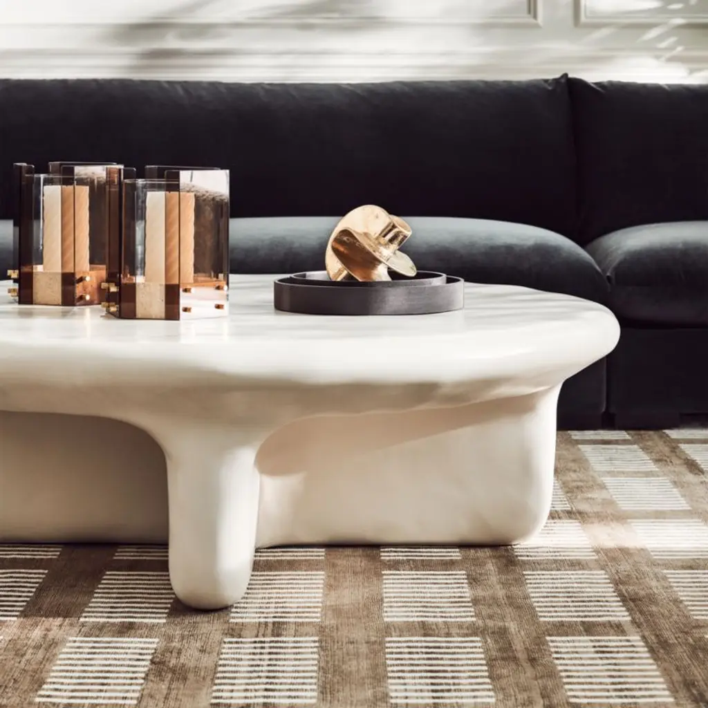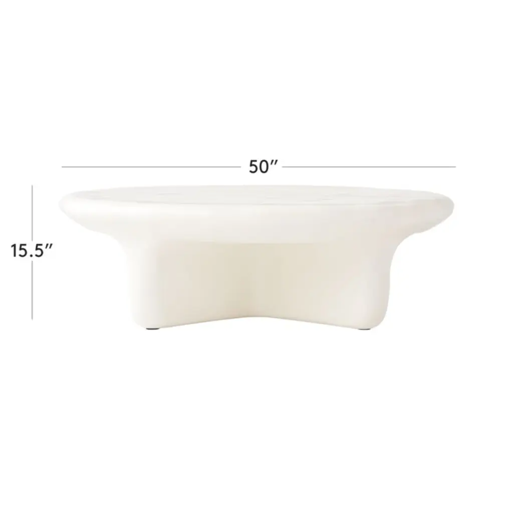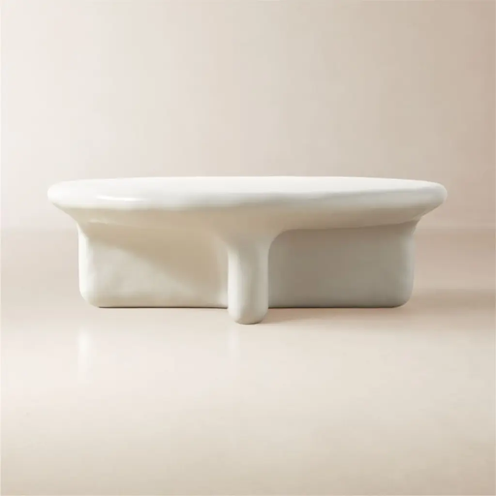 Designed by Melbourne-based VUUE, bold cast resin coffee table stands as a postmodern work of art. The amorphous silhouette evokes a hand-molded look, while the matte ivory finish accentuates the highs and lows of the undulating surface created during the casting process. CB2 exclusive.