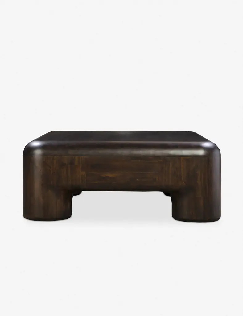 Striking a balance that's playful and sophisticated, the Bodnar coffee table is a masterpiece of design that becomes a bold focal point in a living room seating area. A chunky apron and legs join rounded edges to create a striking silhouette, crafted in acacia wood in a walnut finish, fashioning a modern coffee table that feels fresh yet timeless.