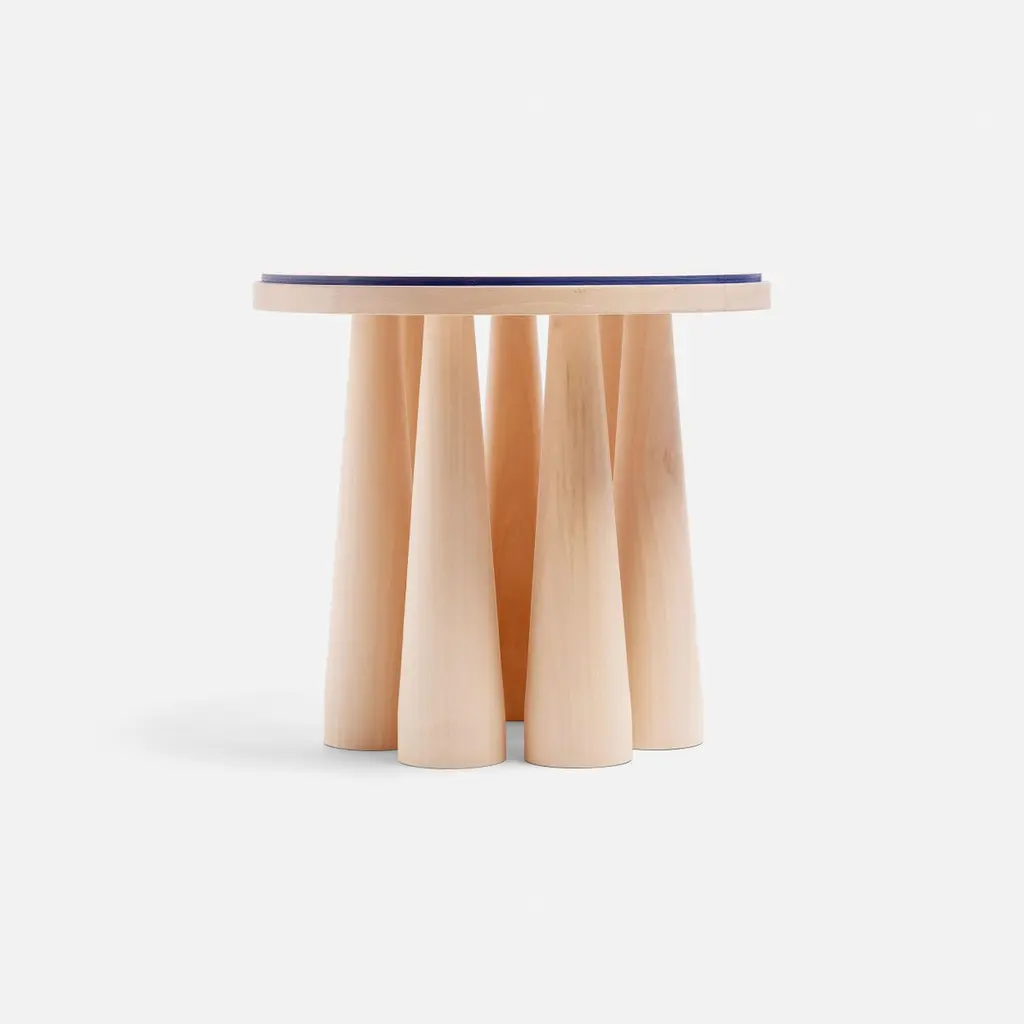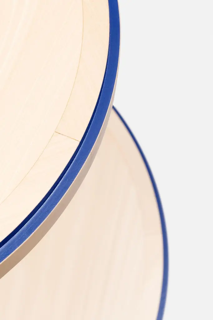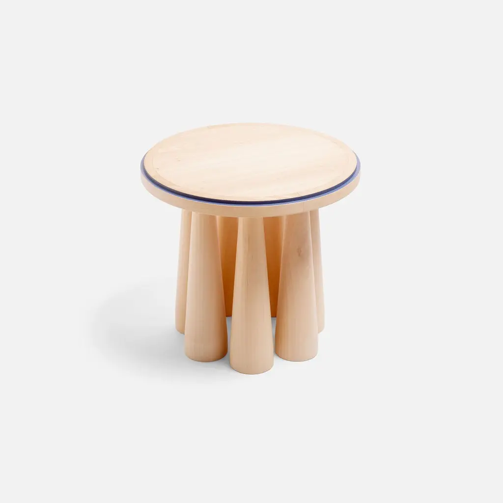 Bogdan medium coffee table by Studio IntervalloDimensions: D 45 x H 40 cmMaterials: LINDEN solid wood, with colored decoration on the circumference.Other types of wood available on request.The Bogdan collection is born from a single trunk of linden wood, an entire family generated by one specific element.A mono-materic piece of furniture, characterized only by a distinguished color line that defines its perimeter and shape.The cones at the base, arranged in circle to create a single visual element, support the top that is configured as the unifying part of what raises it.The colored milled-edge ribs, embellish and complete the top, creating, together with the legs, plays of chiaroscuro all around.studiointervallo creates furniture and interior design. All its creations are painstakingly researched with a thorough use of full and empty spaces.For this reason, it could only exist between the fullness of the city of Milan and the emptiness of the countryside around it, in a place which is also ideal for meditating, as well as a stimulating anteroom to creative thinking.This unusual location’s aura successfully blends with the projects of studiointervallo, thus enriching them with nature in a final true epiphany which is the very soul of each single creation.Founded by Andrea Ghisoni, the studio pursues the perfect blending of essential lines with the brightness of the shapes and and the nobility of true craftsmanship; the overall goals would be to just make people happy.