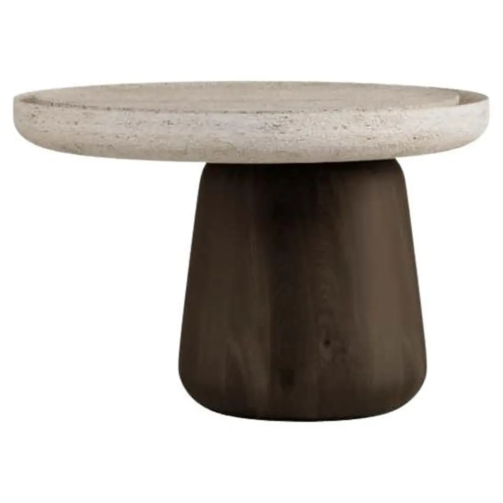 Bold Blend Coffee Table Small - Wood (Medium Finish) And Travertine