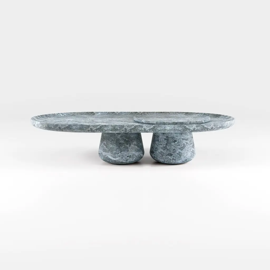 A true celebration of contemporary elegance, the large Bold Coffee Table embodies the essence of Italian craftsmanship, attention to detail, and sophisticated aesthetics. Versatile and refined, the Bold Coffee Table effortlessly becomes the focal point of your room. The use of Forest Green marble, characterized by its rich and lush green tones, combined with the sturdy and modern design, elevates any living room to new heights of refinement, adding a touch of Italian charm to the space. Embrace the allure of Italian craftsmanship that seamlessly marries sophistication with natural beauty.It includes a tray in forest green marble. As natural stone is sourced from the earth, subtle distinctions in each piece are inevitable. We appreciate these organic variations as they contribute richness and individuality to the design, elevating the overall attractiveness of the product.