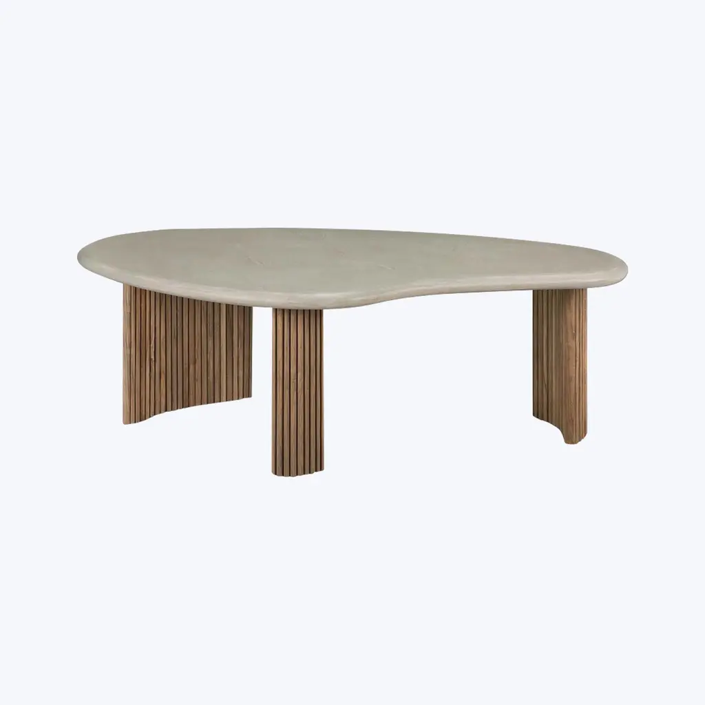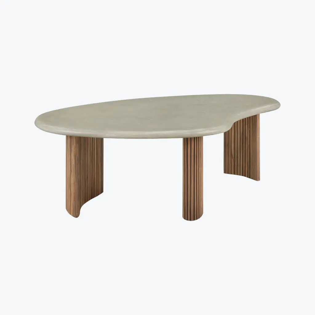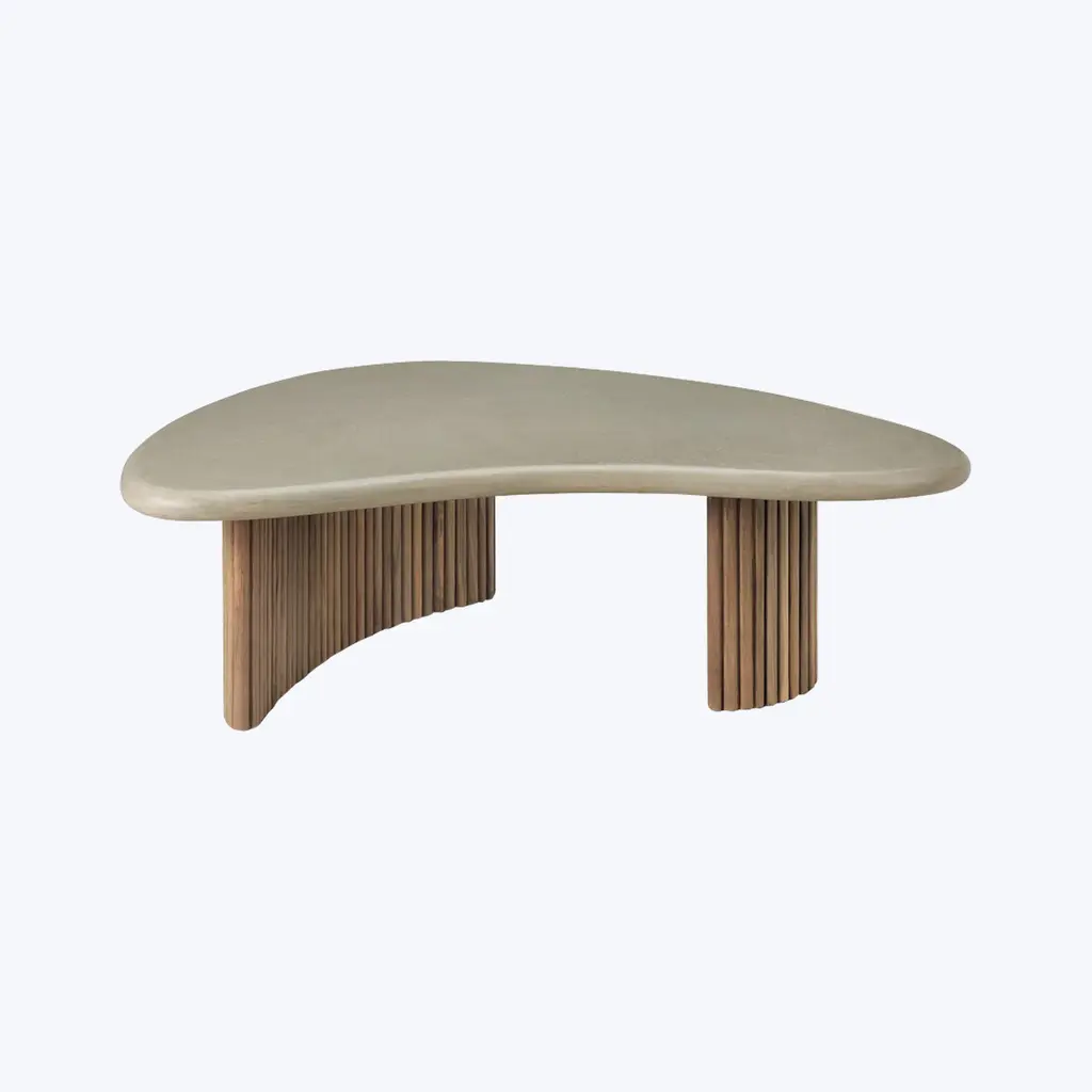 Discover the Boomerang Outdoor Coffee Table by Ethnicraft, a stunning piece bringing sculptural elegance to outdoor spaces. Boasting a beautiful medley of textures and materials, the Boomerang features a smooth, hand-finished concrete top paired with a striated base in reclaimed teak. The table’s cement top is sealed for optimal protection against spills and daily outdoor use. Choose from short and tall editions, or style both together for a nested look.