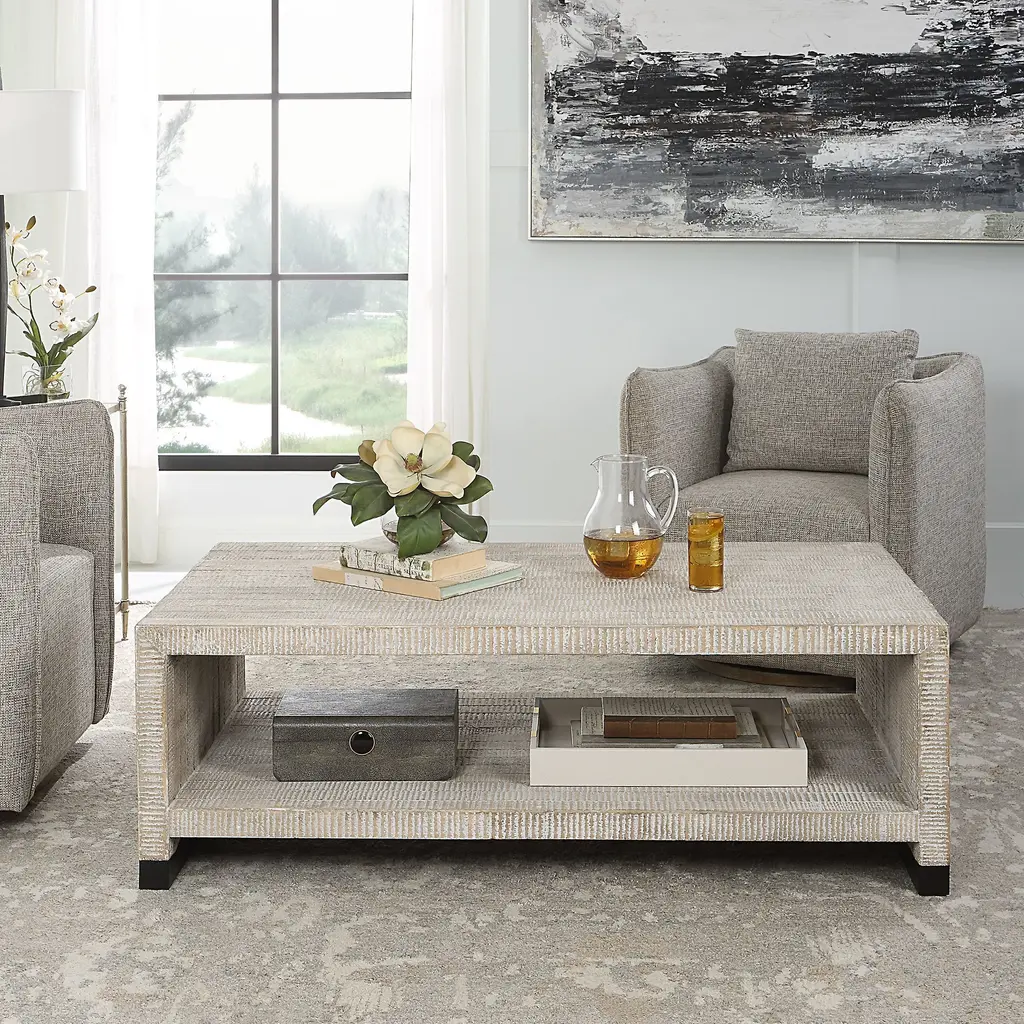 Bosk 54 X 18 Inch White Washed Glaze And Natural Aged Black Coffee Table