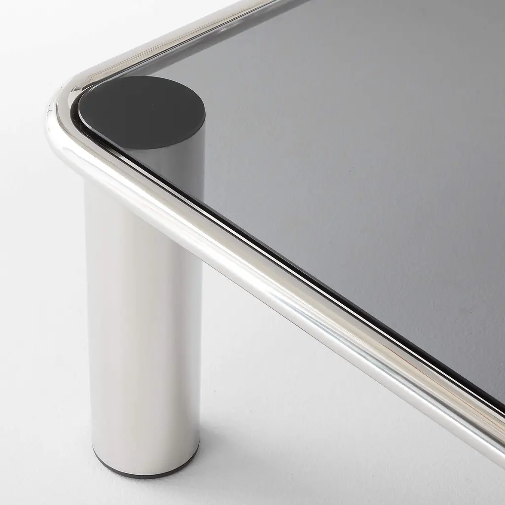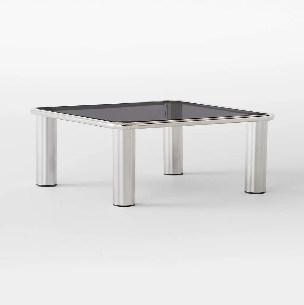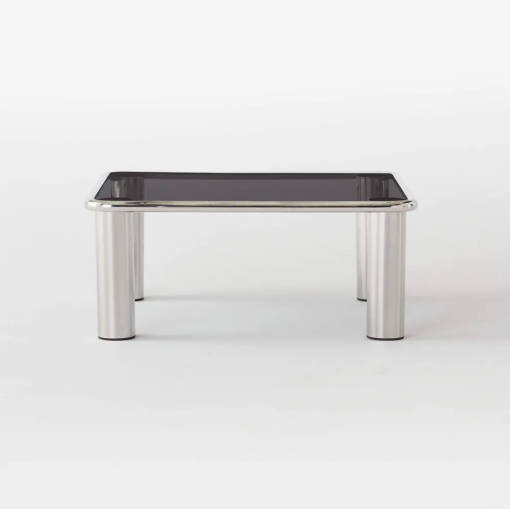 Created by groundbreaking Italian designer Gianfranco Frattini, this square coffee table exemplifies the decade-defining aesthetic he introduced in the 1970s. Designed at the same time as his famous Sesann sofa, this polished stainless steel coffee table features a grey smoked glass top that plays up the sheen of its tubular legs. Newly reintroduced in collaboration with CB2, the top and bottom are made in Italy—just like the original. CB2 exclusive.