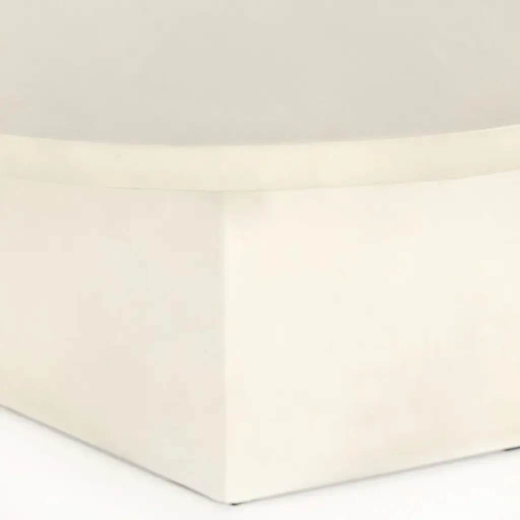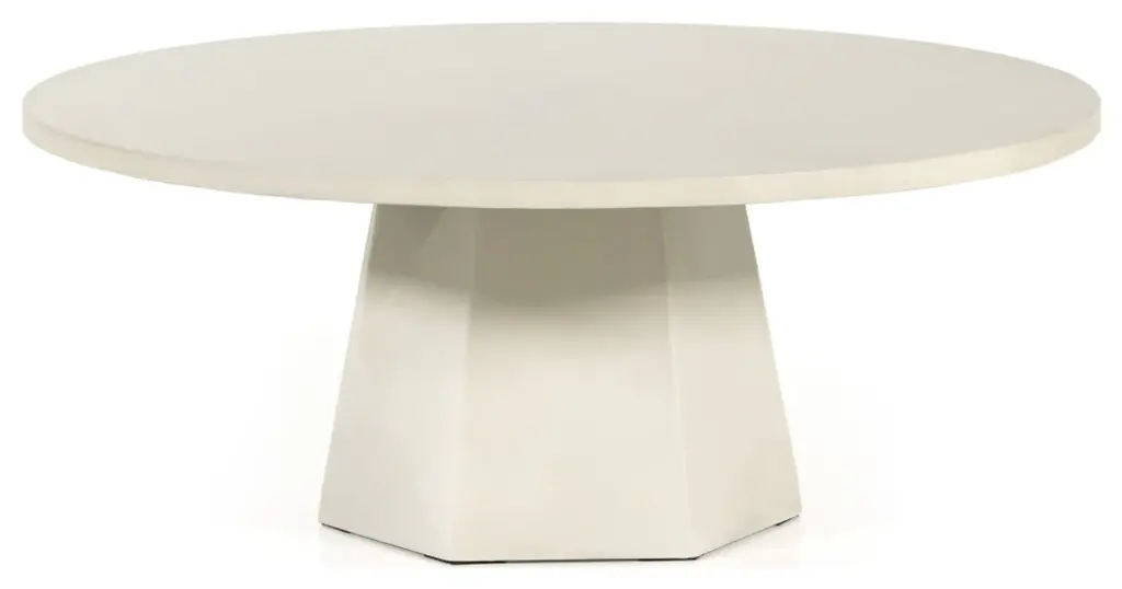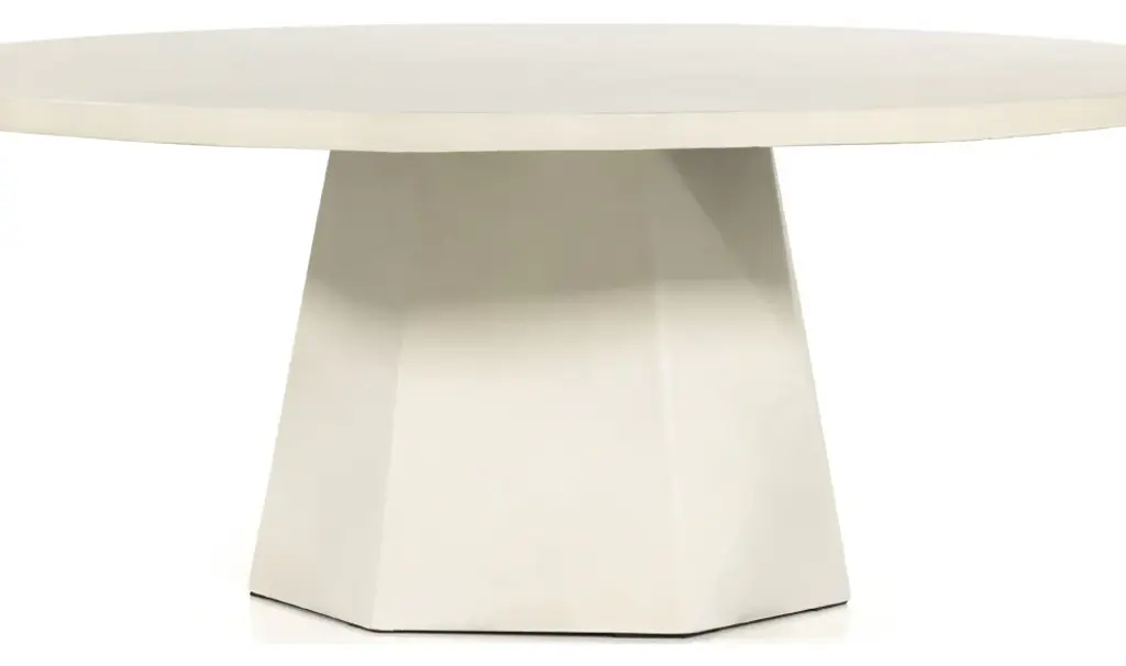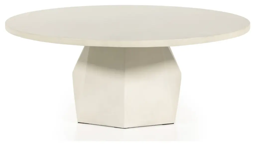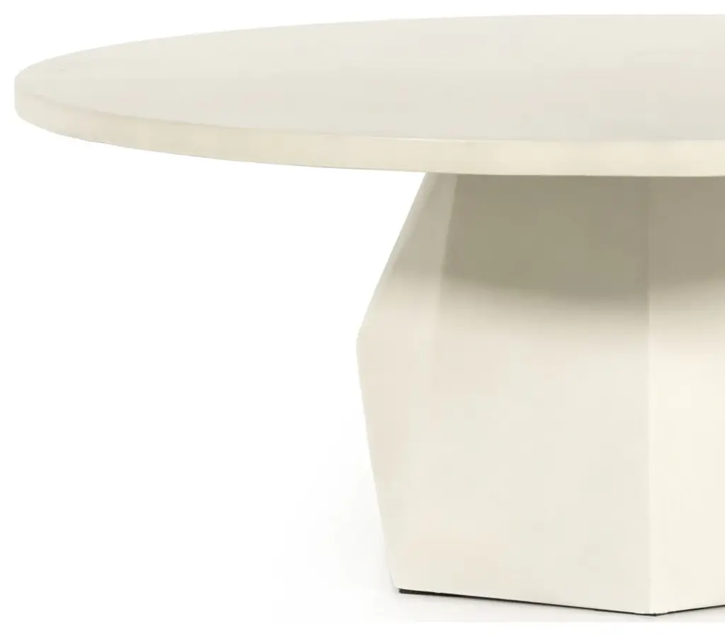 White-finished concrete forms a faceted base for impact from every angle. A roomy, rounded top is ready to welcome guests indoors or out. Cover or store inside during inclement weather and when not in use.