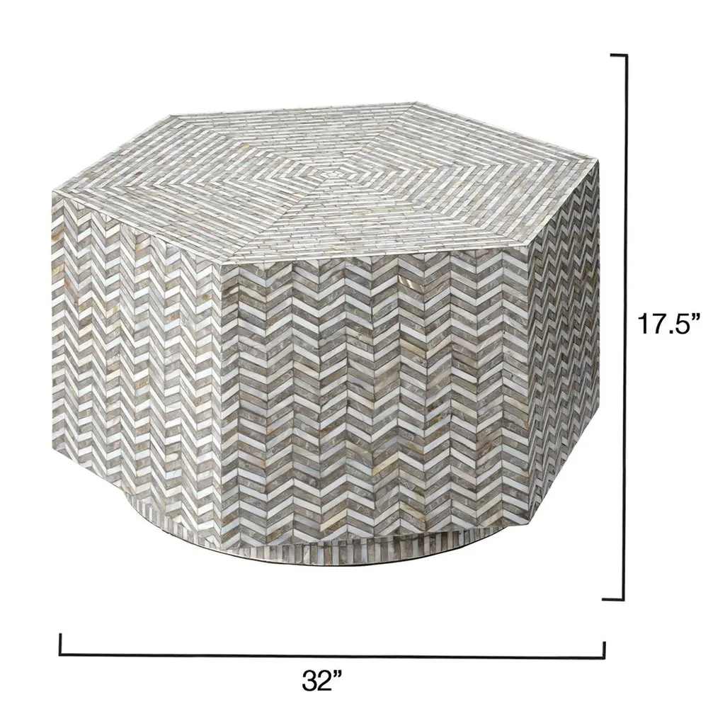 Brando Mother Of Pearl Hexagon Coffee Table, Grey