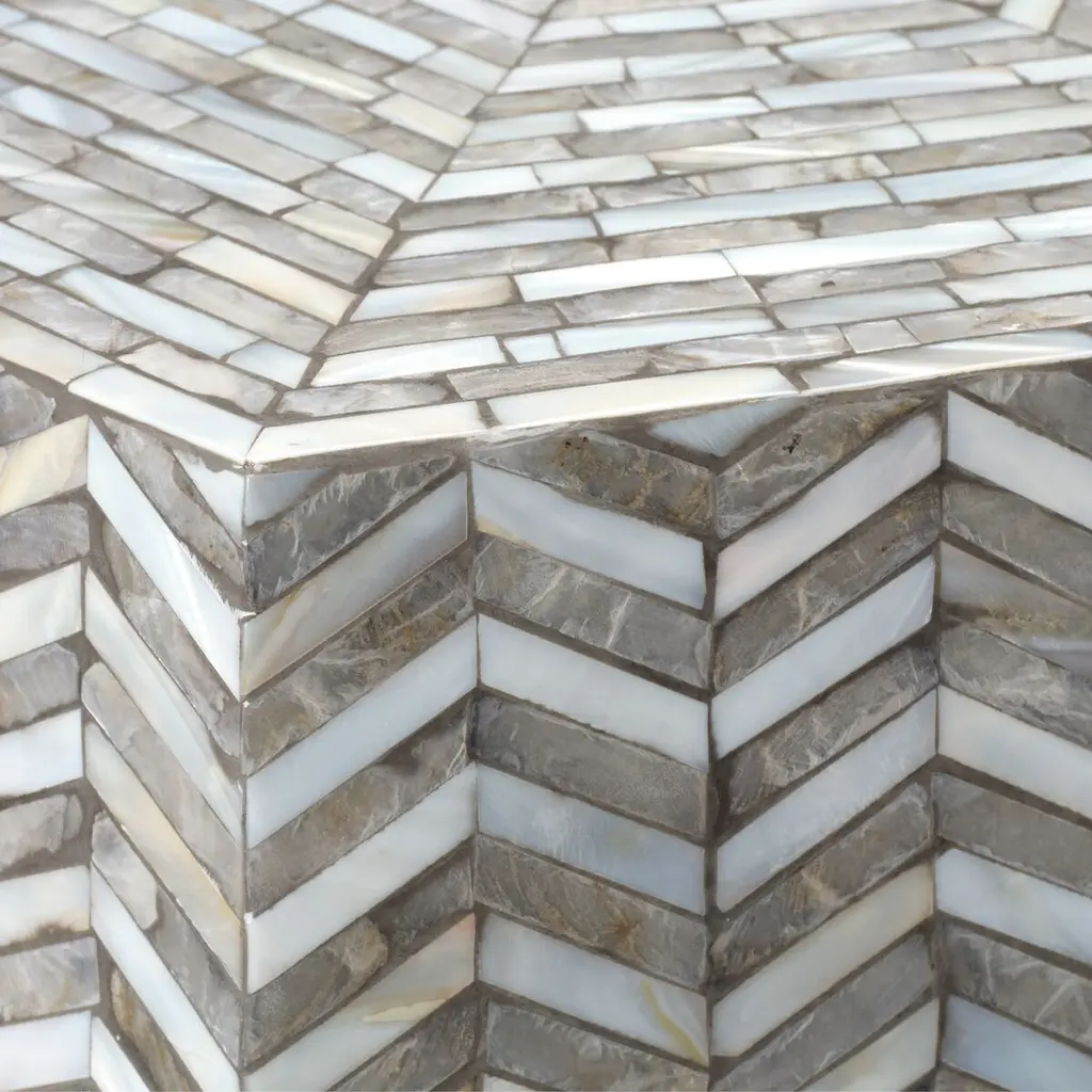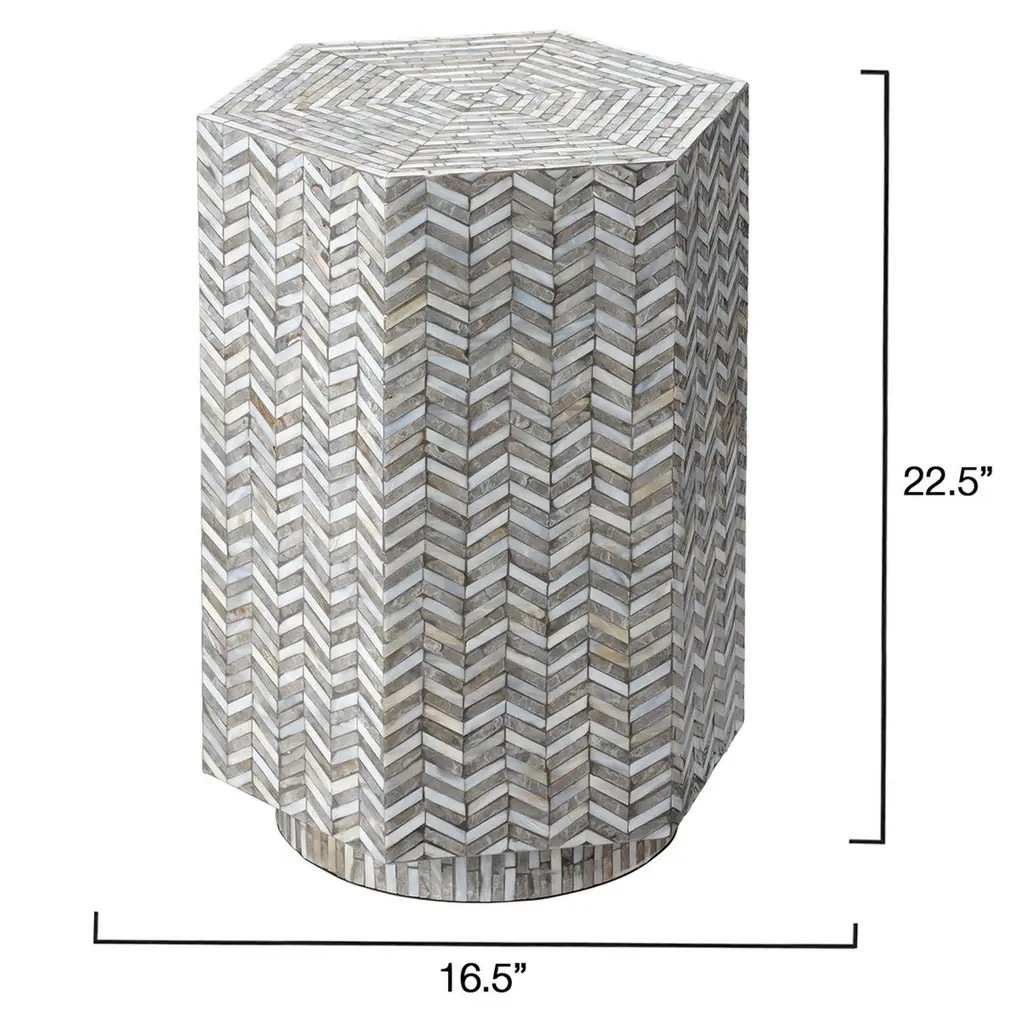 Brando Mother Of Pearl Hexagon Side Table, Grey