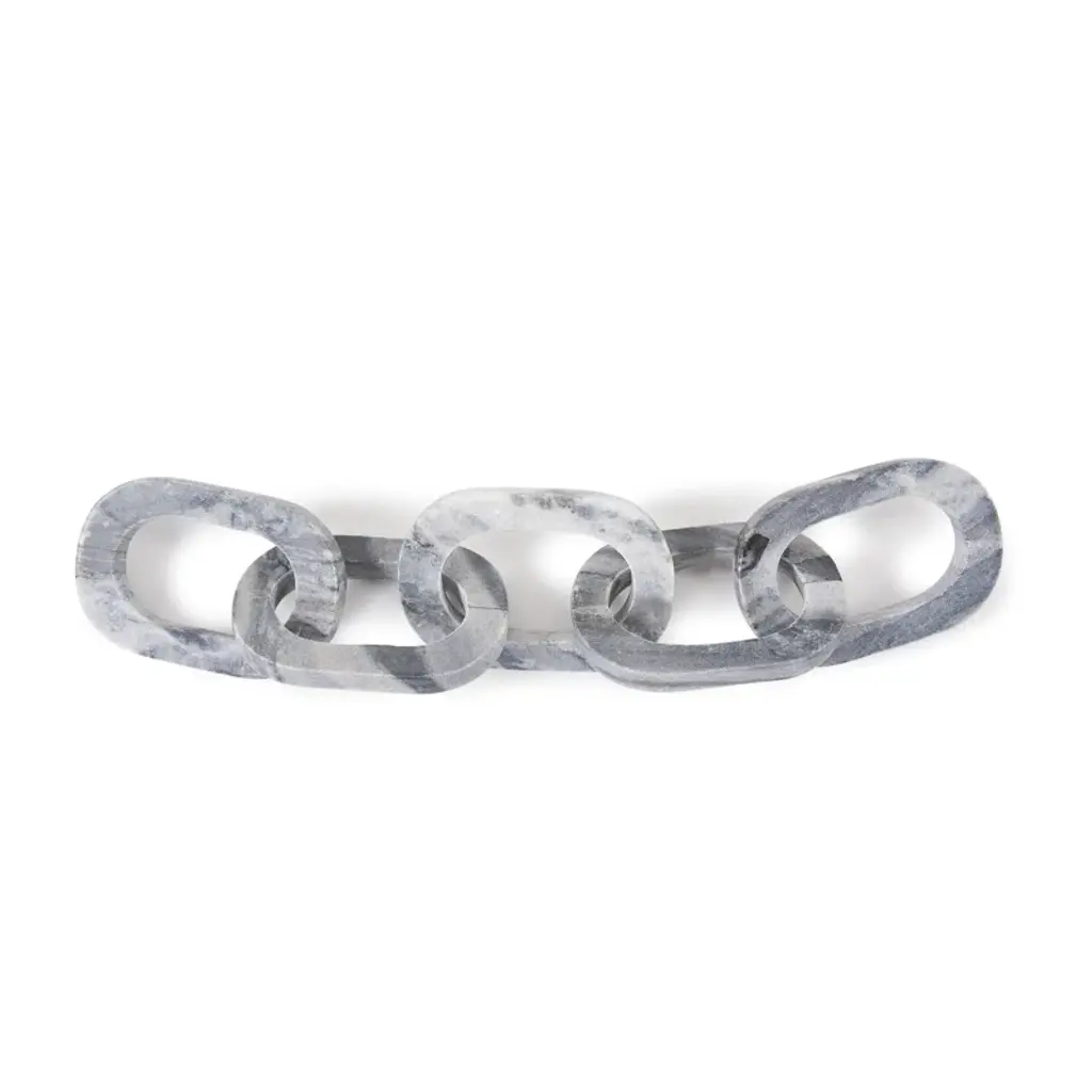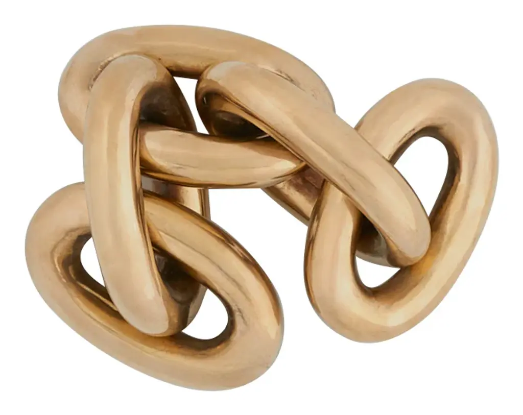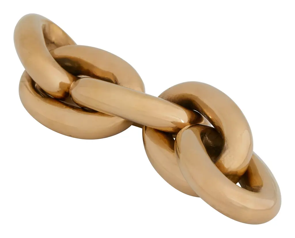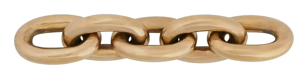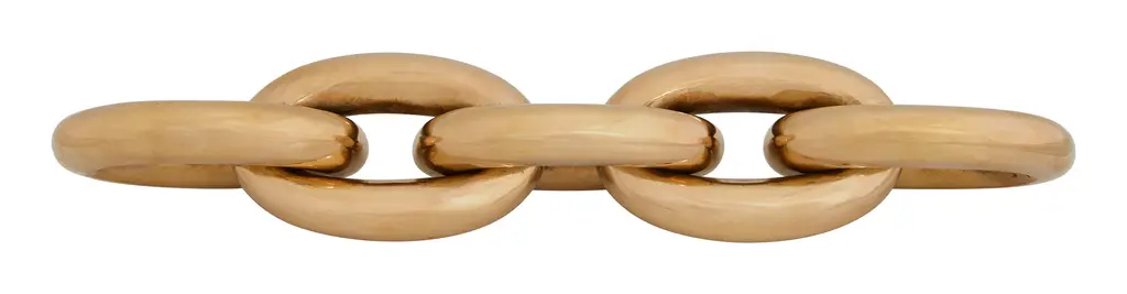 Bring a chic pop of shine to any tabletop vignette with our Brass Chain. This five-link chain is completely crafted from shiny brass, which will take on a one-of-a-kind patina with age. Undeniably cool as a paperweight on the desktop, our Brass Chain would also stun on a well-styled etagere or laid atop a stack of coffee table books. •brass Dimensions •2"W x 10" long