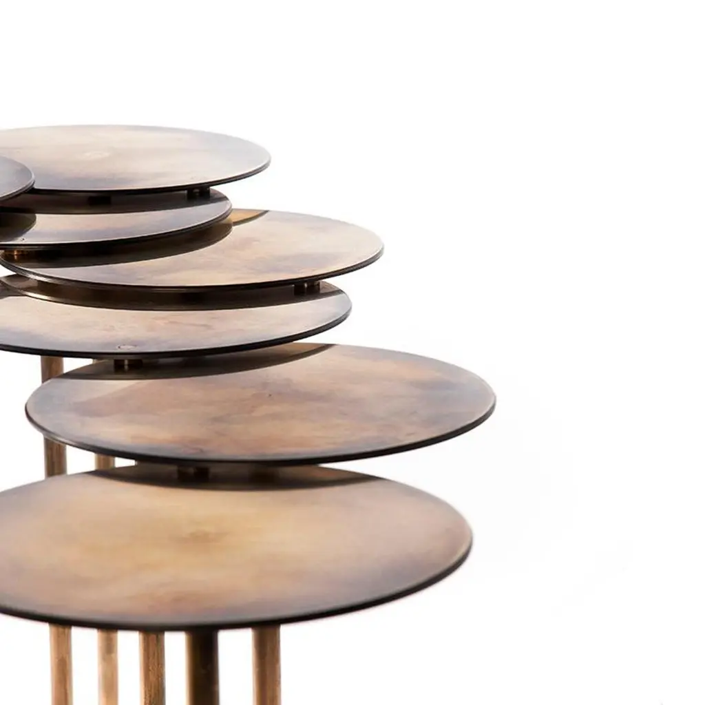 Brass Nenuphar coffee table by Atelier Thomas FormontDesign: Thomas FormontMaterials: Solid brass fine polished, waxed, patinated finish with an aged effectDimensions: 7 trays of 25 cm diameterHeight 45 cmArticulable table composed of 7 solid brass tops and legs polished, waxed and aged patina finish.Made at the Atelier Thomas Formont.Atelier Thomas Formont specializes in metalwork, locksmith and metalwork. We collaborate with architects, prime contractors, real estate developers and also work directly with individuals for the realization of works.We operate everywhere in France, mainly in the Paris region and in the Hauts-de-France, but also abroad on demand.