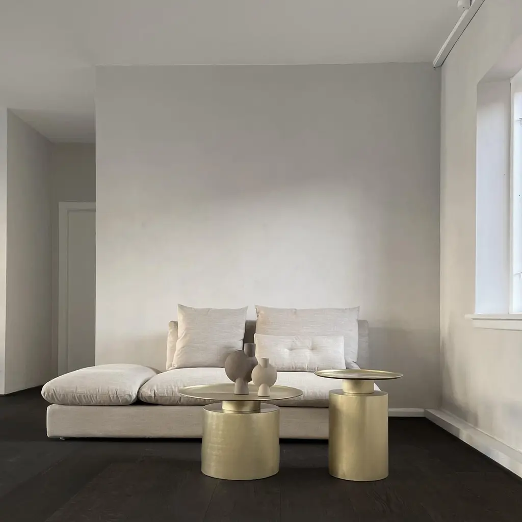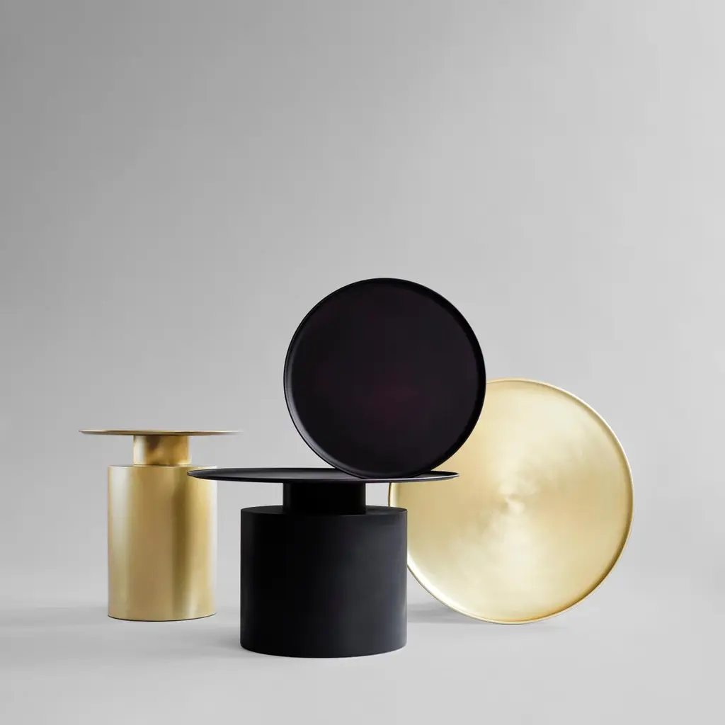 Brass pillar table low by 101 CopenhagenDesigned by Kristian Sofus Hansen & Tommy HyldahlDimensions: L65 / W65 /H41 cmMaterials: plated metalPillar is inspired by the rich lustrous use of material in the 1930´s Art Deco movement. The coffee table is characterized by the contrast between a paper thin tabletop and voluminous base, embracing the material itself. The Pillar coffee tables are featured in a tall and a low version, made of plated metal in tree colors; brass, burned black and zink which gives a sophisticated appearance and combined with the simple yet refined design makes a unique addition to your home. The curved exterior makes this table great for classic and contemporary interiors alike. 101 Copenhagen is a Danish design brand founded in 2017. With a vision to honor exquisite quality and craftsmanship, the collection encompasses furniture, lighting and accessories in a timeless, yet modern design. With a true passion for materials and refined textures, organic shapes and colours, 101 Copenhagen presents the epitome of classics and must-have novelties for Scandinavian and international interior connoisseurs alike.