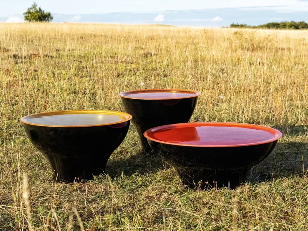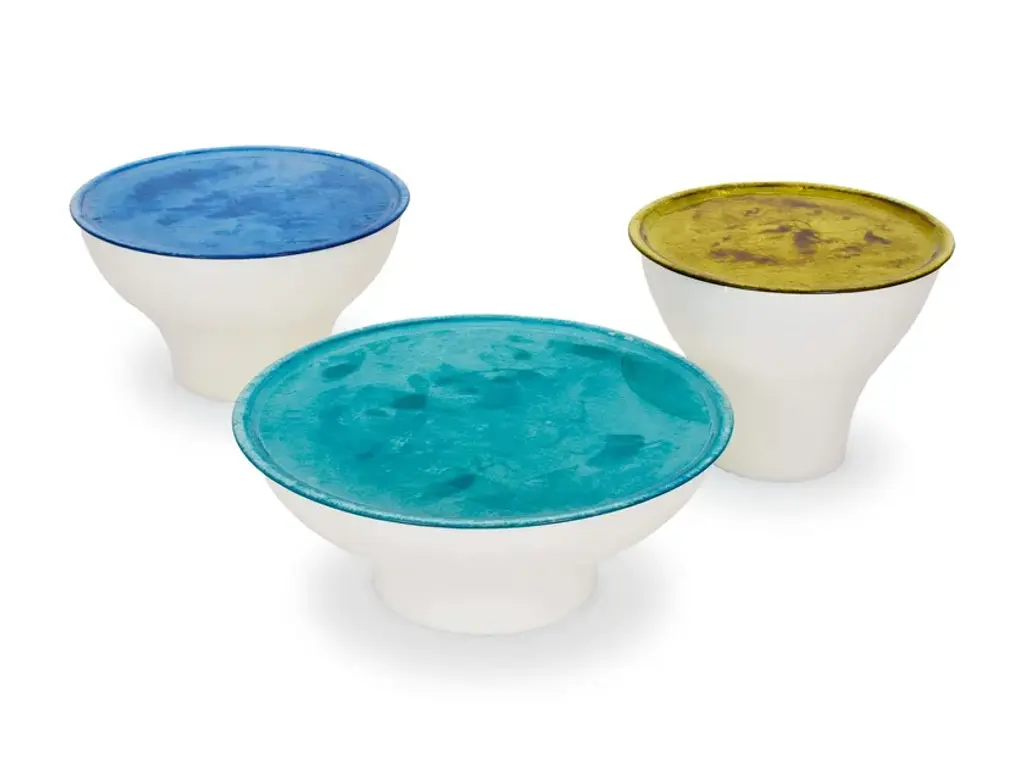 Designed glass in the highest quality is used for the storage surface in the unique BREDA side tables. The glass is handmade regionally in small series. As a result, each glass top is unique. The colors selected are meant to create attractive, unique accents indoors and out. For large lounge areas, the set of three in different sizes is the ideal storage surface.