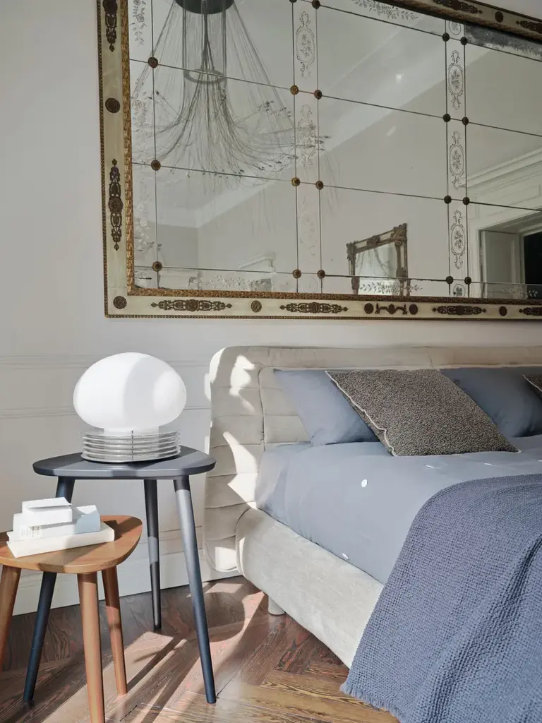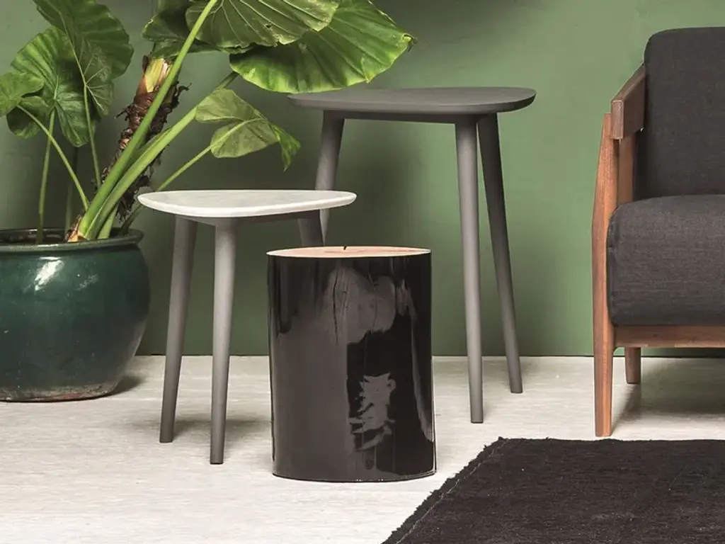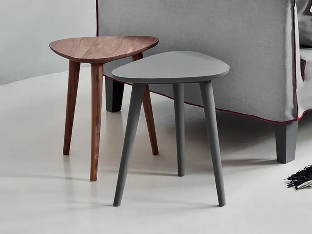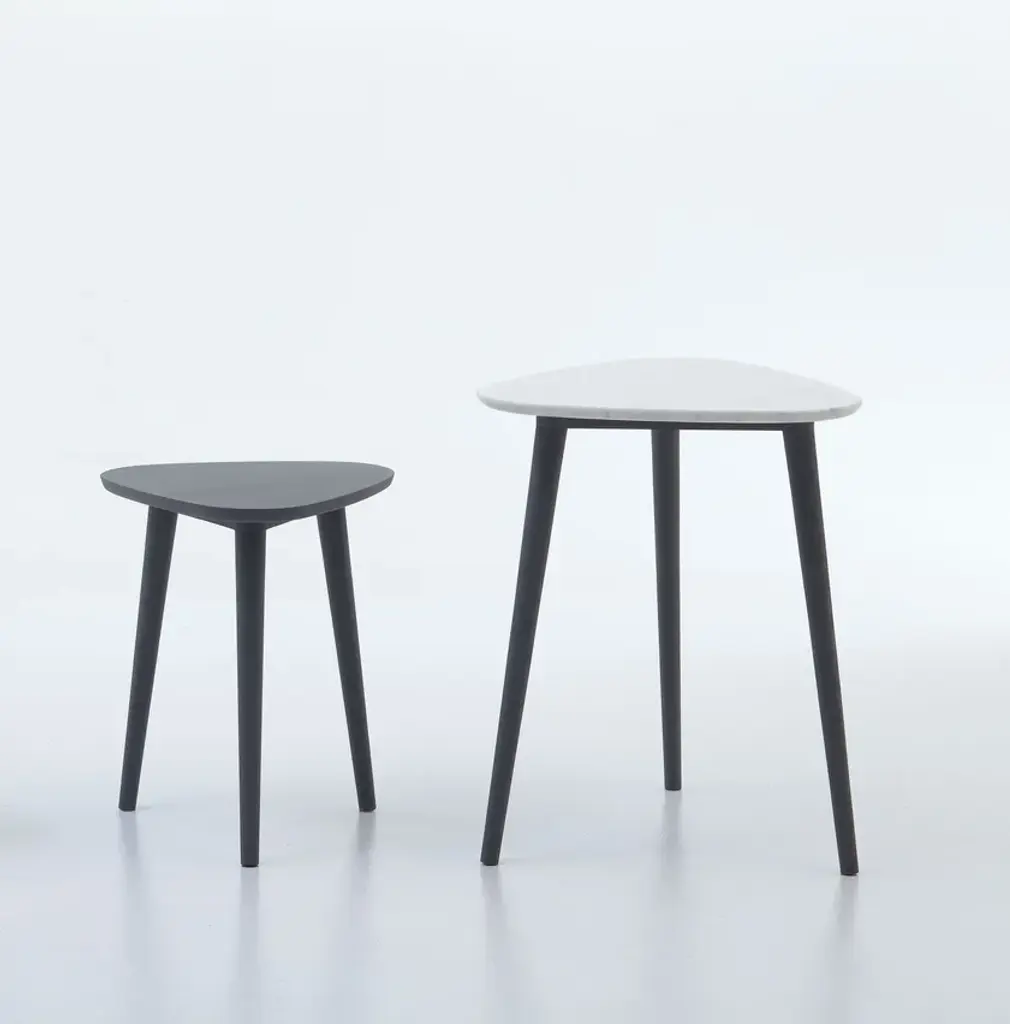 Brick 242 is a triangle-shaped side table in solid walnut or oak.A family of coffee tables with a young and contemporary charm, Brick 241/242/244 have a three-legged structure in solid natural Canaletto walnut, bleached oak or oak lacquered in white, grey, black, ocean or dove-grey. The particular triangular top has slightly rounded corners for a softer shape. For wooden tops, legs come in the same color.With Brick, Gervasoni's eclecticism is summed up in a collection: sections of barked and hand-carved wrightia trunk become suggestive tables and ottomans – and again – mirrors, steel or wooden chairs, armchairs, sofas, beds and upholstered ottomans. Brick is a line of furniture that mixes Asian suggestions, Nordic influences and industrial touches. A collection that is transformed: young, contemporary but with an evergreen charm.