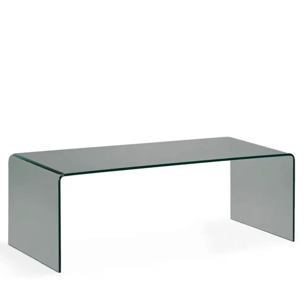 An ode to fluid lines and intriguing transparencies, this coffee table finds impeccable positioning in sophisticated living rooms of contemporary inspiration. Tiny metal feet only interrupt the freestanding silhouette fashioned of a single 1cm-thick smoked glass panel curving for tracing the couple of incorporated legs. Playfully reminiscent of a bridge, it exemplifies refined minimalism.