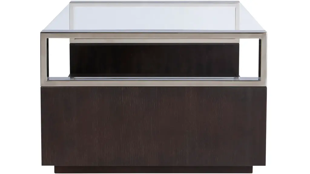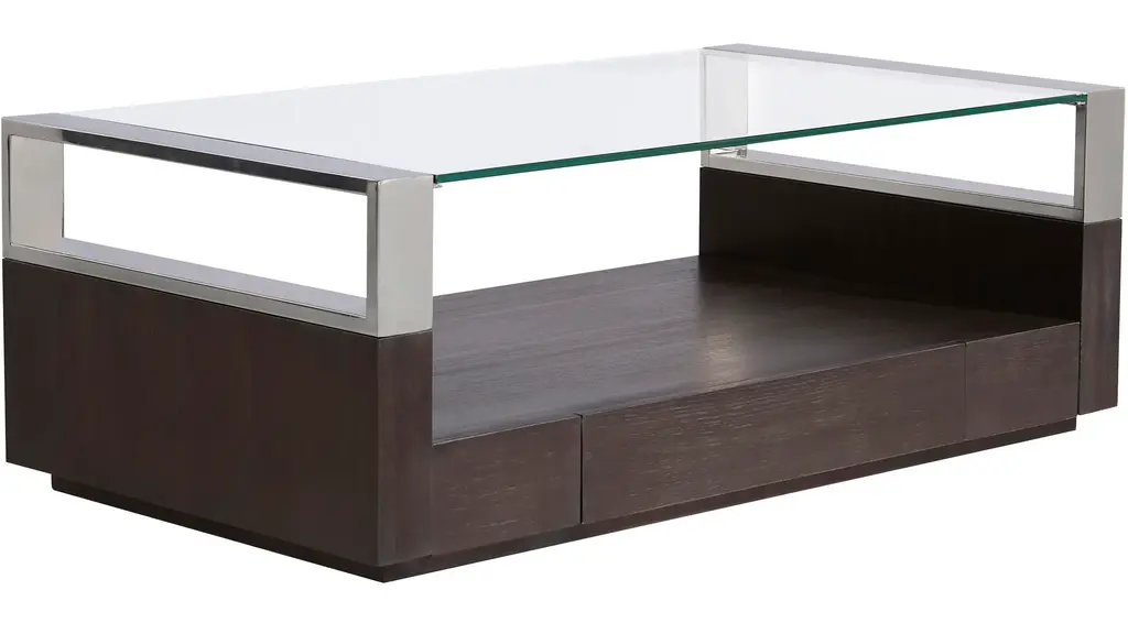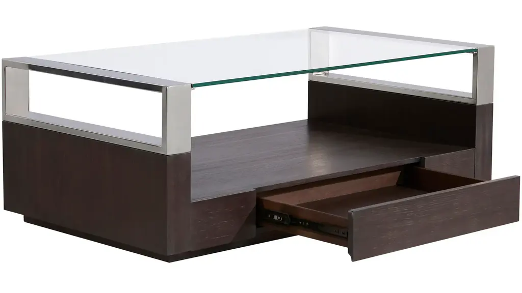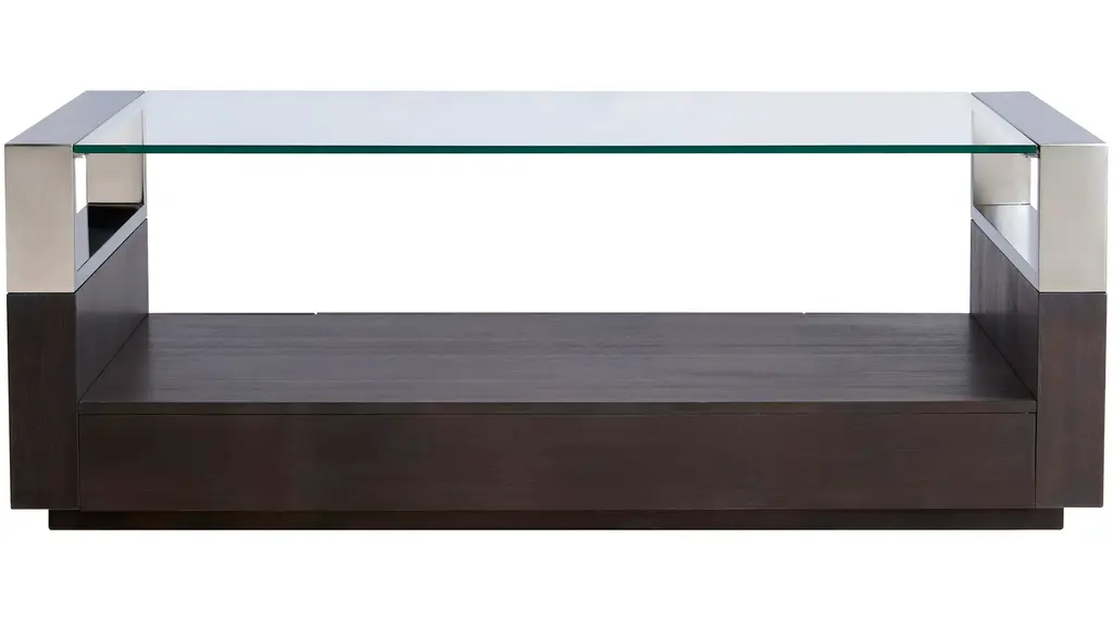 A sophisticated pairing of graphite and glass on the Brighton coffee table brings sleek visual interest to a cutting-edge office, stylish collaborative space, or any modern living room. Brushed stainless steel end caps and tempered glass on a base of graphite with a fixed shelf and drawer are designed for form and function. And you can easily rearrange your space for convenience, thanks to the casters.