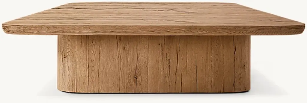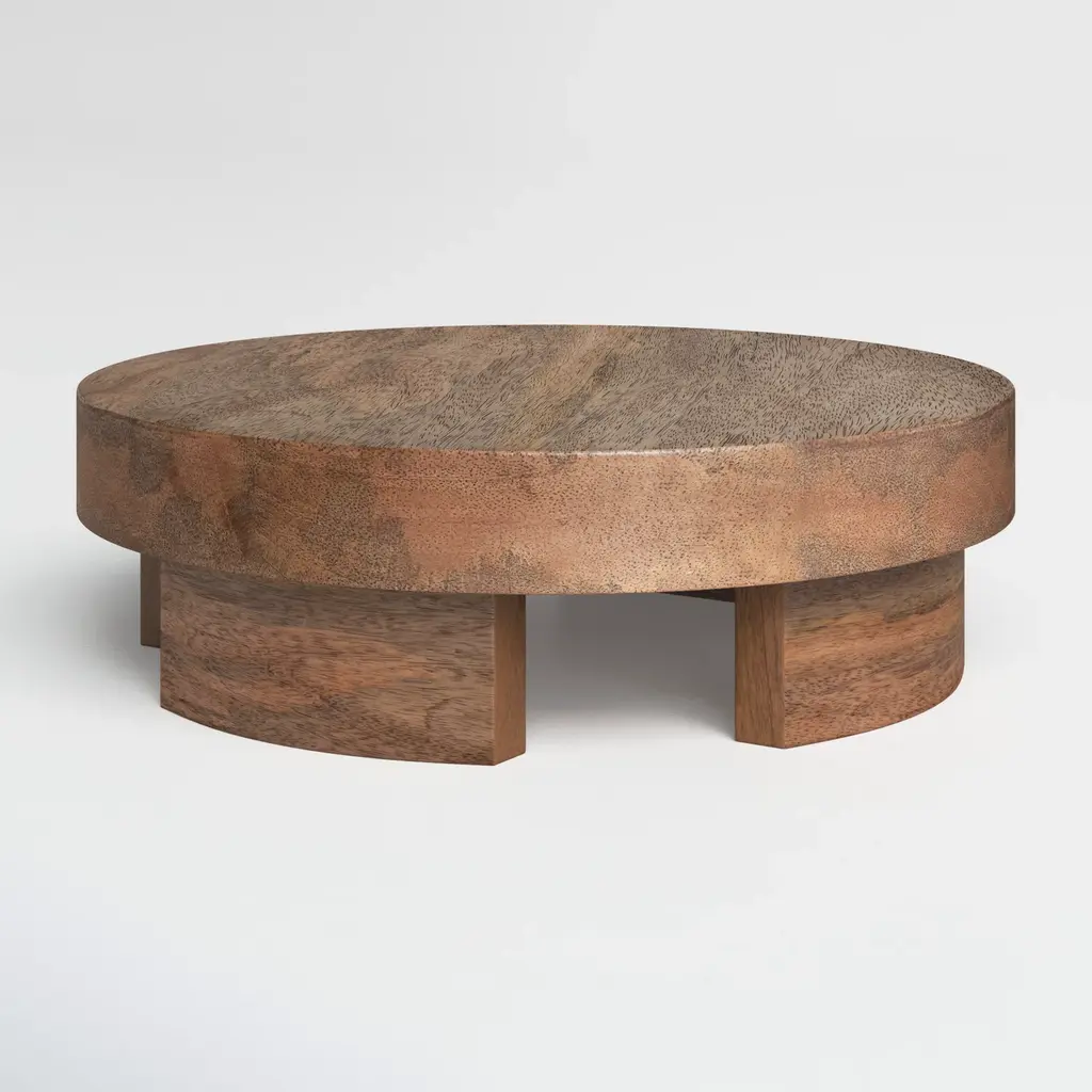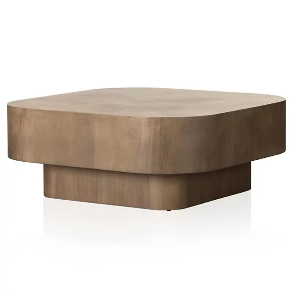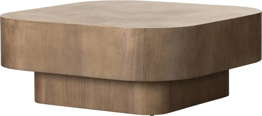 This coffee table lends a minimalist design while adding plenty of rustic style to any living area. Crafted from solid and engineered wood with a warm umber burl finish, it features a patchwork pattern on the surface to bring your space novel movement and a bit of modern flair. Rounded edges and an inset base complete this beautifully light look we love. The table top measures 40" square, giving you ample room for decor, books, and other items you're longing to display.