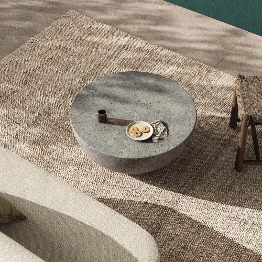 Bruce Modern Classic Grey Concrete Round Drum Outdoor Coffee Table