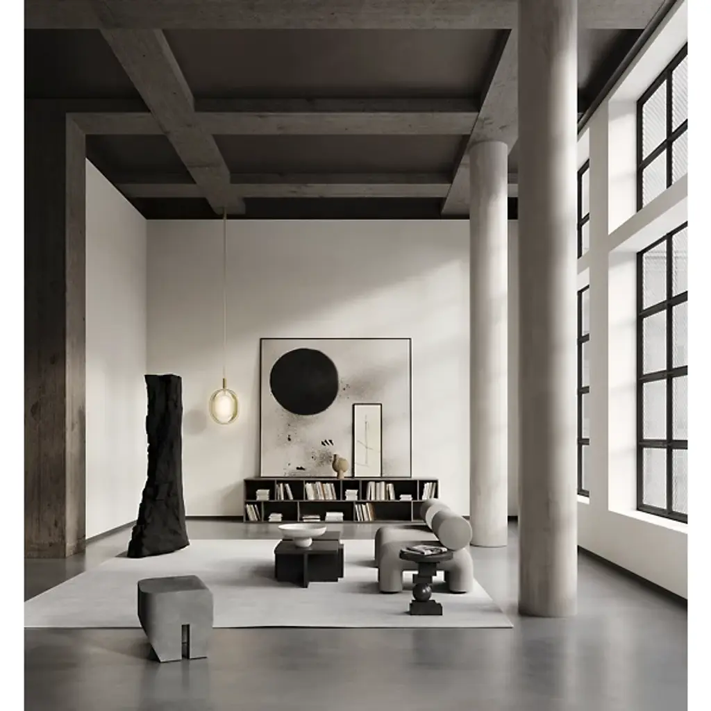 The Brutus Coffee Table from 101 Copenhagen offers a bold nod to Brutalist architecture. A design by Kristian Sofus Hansen & Tommy Hyldahl made from lightweight fiber concrete, this bold, sculptural piece combines sharp architectural lines with subtle curves, resulting in a memorable form. Each table has been hand-painted to achieve a textured unique surface that adds character and depth to its surface. It's great for modern spaces, both a functional centerpiece and a minimalist design statement.
