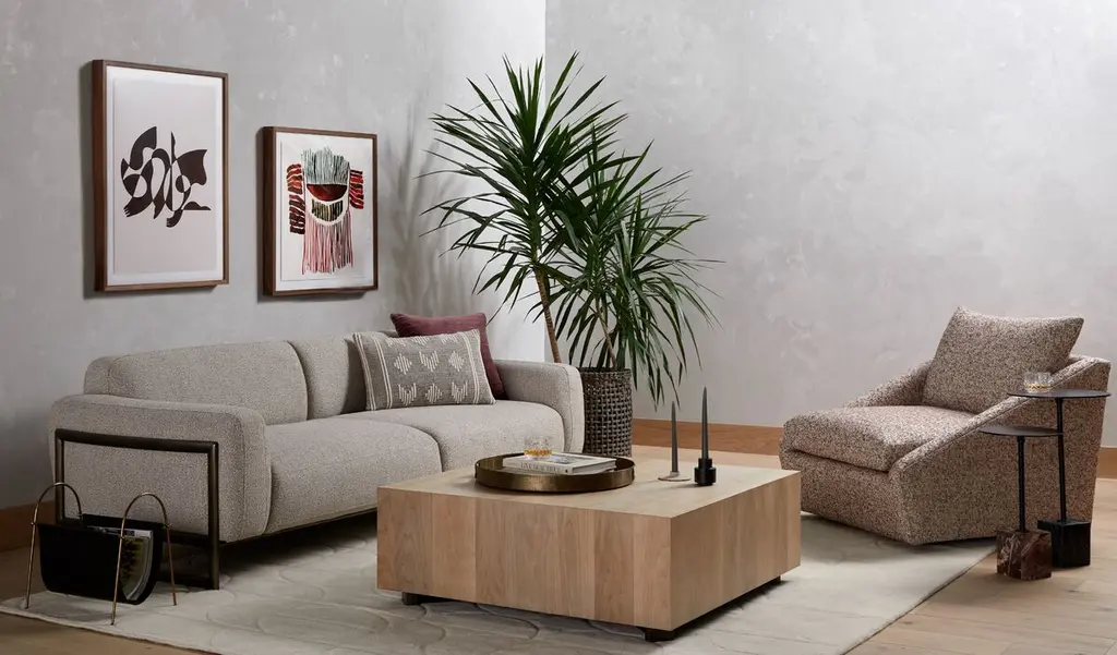 Stunning forces of nature, captured in a coffee table. Ashen walnut is hand-shaped into a squared silhouette and placed over an oxidized iron base. Reflective of woods' natural character, a slight color variance is possible.