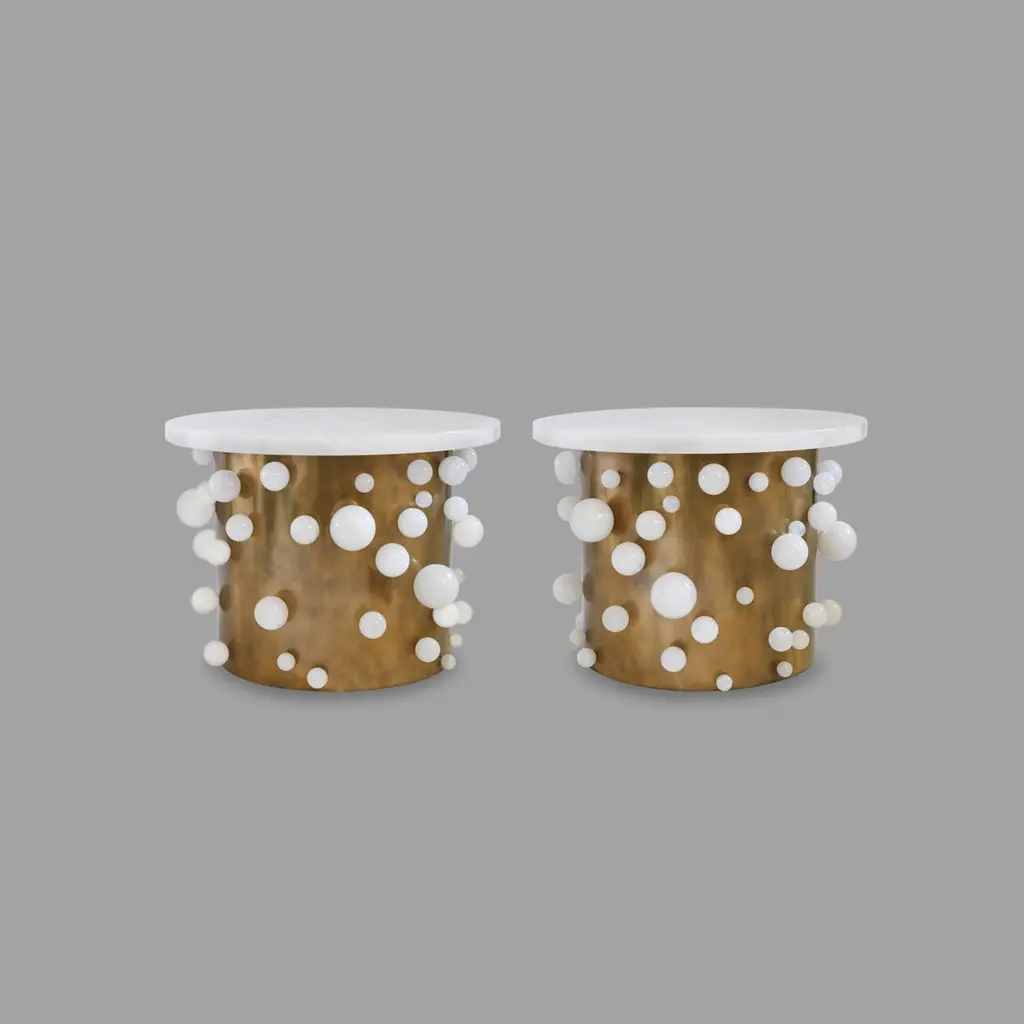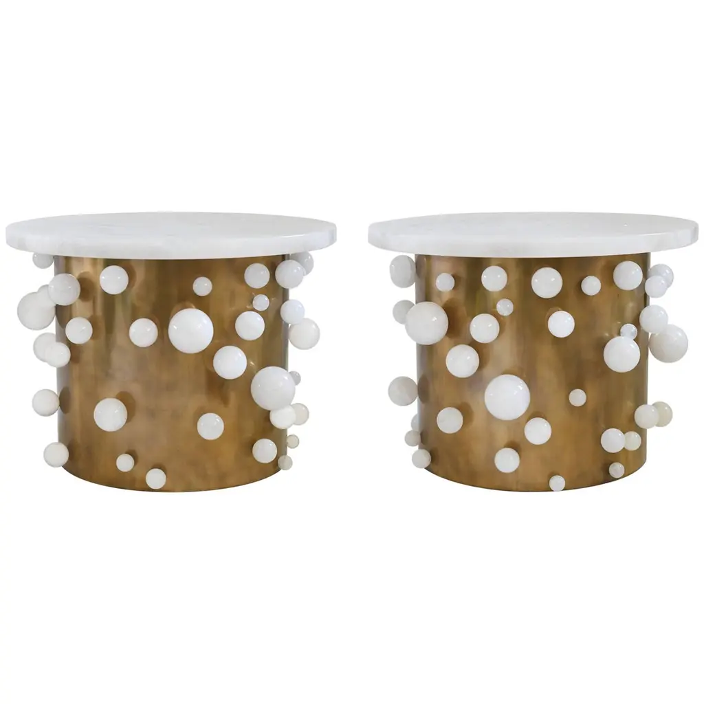 A pair of bubble rock crystal cocktail table. The luxury white rock crystal quartz and top with antique brass stand.Can be sold separately.$7,800 each