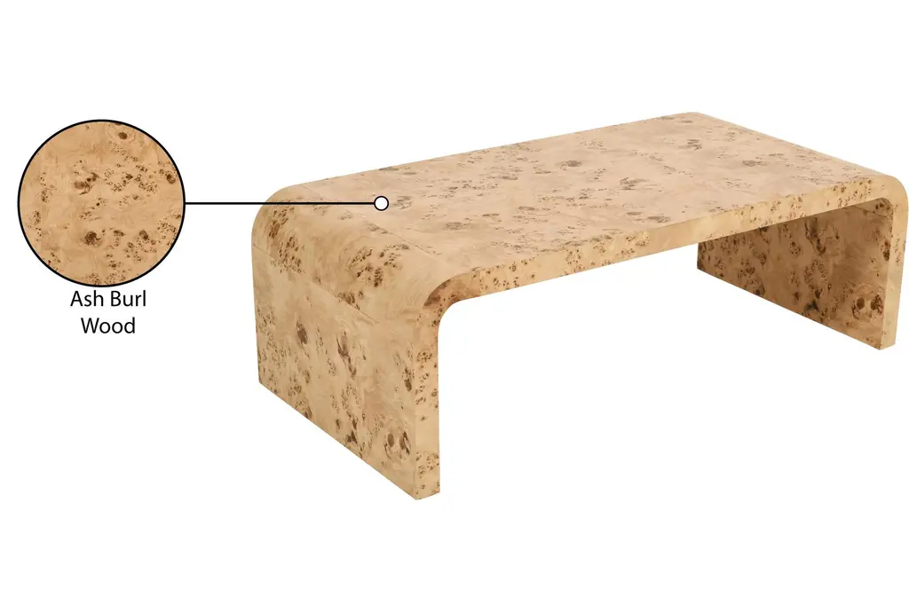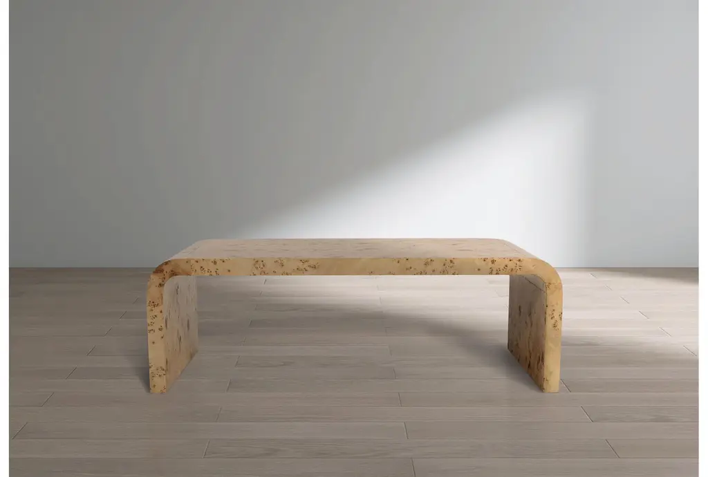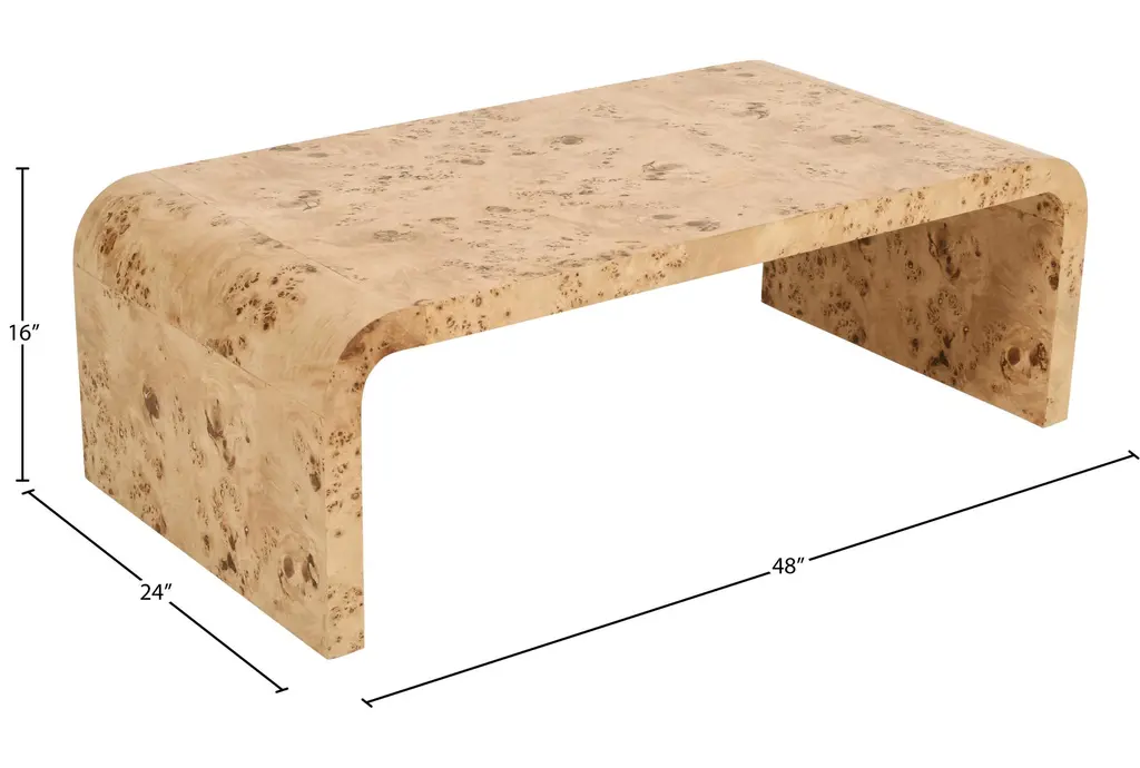 Burton Modern Natural 48" Burl Wood Arch Coffee Table | Rectangle