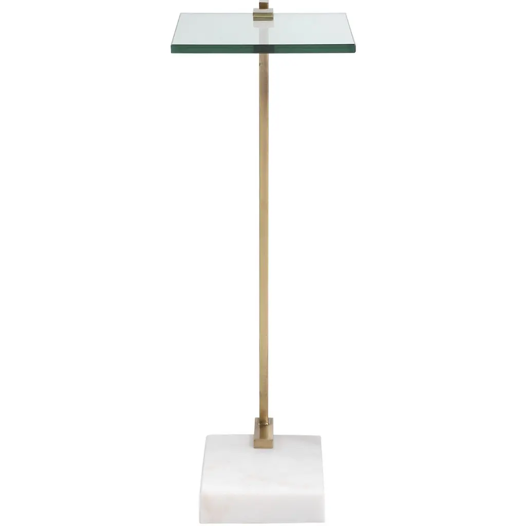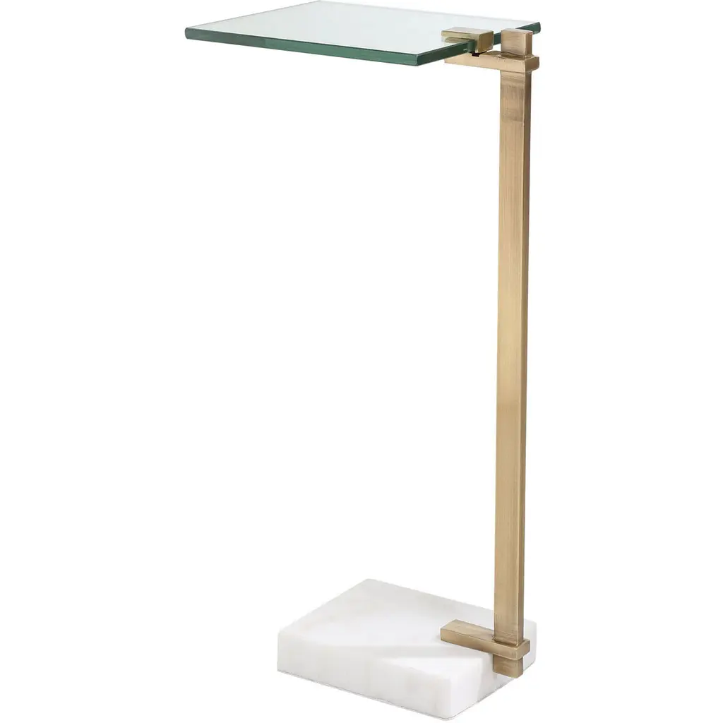 This Perfect Pull-up Table Pairs An Updated Design With Timeless Finishes. The Tempered Glass Top Is Supported By A Brushed Brass Plated Stainless Steel Base Accented By An Elegant White Marble Foot With Natural Veining.