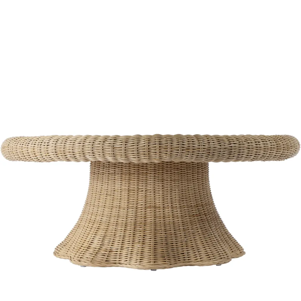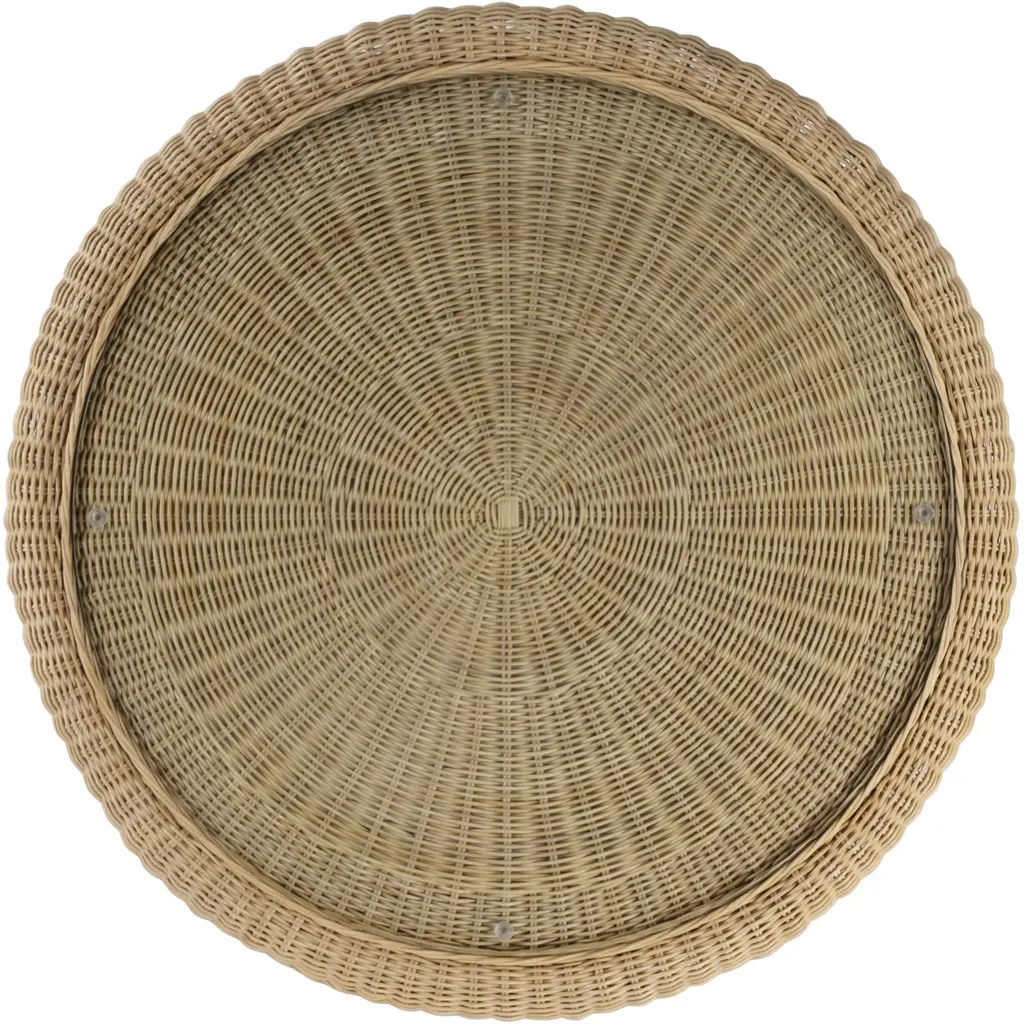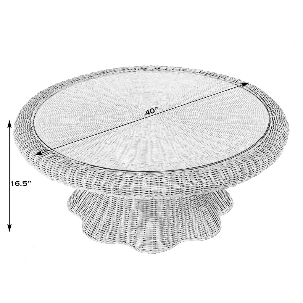 Elevate your space with our Butler Specialty Company natural rattan coffee Table. Crafted with love, its glass inset top adds elegance, while the hand-woven rattan frame, with its scalloped edge base and woven frame, embodies timeless romance. Bring warmth and charm to your home.