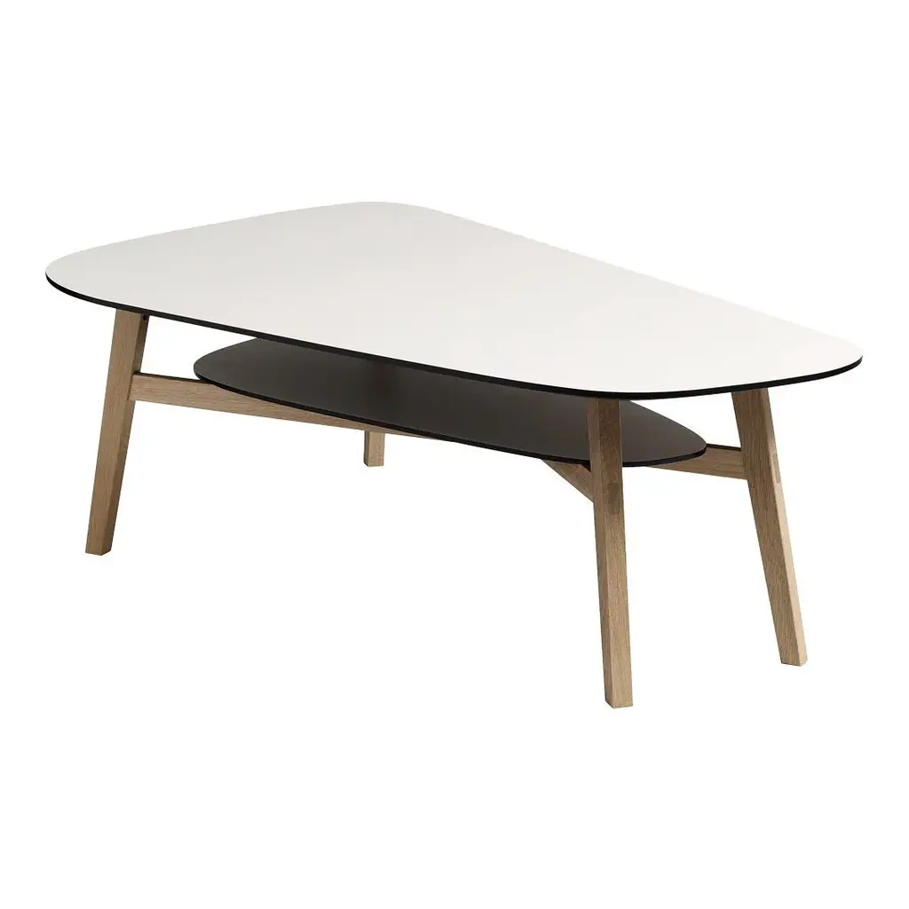 Inspired by nature's mathematics - Nature and soft values are integrated into a simple, stylish and character-filled table. Russian Professor Georgy Voronoi of Saint Petersburg University worked on continued factions in the elements of nature. They are transferred to the table design and provide an elegant calm and softness. With the combinations of different woods and laminate colors, you put your personal touch. The classic craftsmanship mixed with the unconventional shape gives the table a unique expression. The table is available in wood types: oak, walnut and black stained and there is the possibility of top plate in either solid wood or laminate. As an option you can buy a shelf . During the shelf, milled thin grooves make it easy to place on top of the coffee table's crosstalk, which gives a beautiful detail. Thus, neither screws nor brackets are used for mounting the shelf.