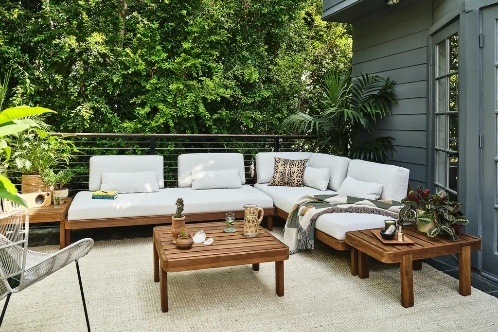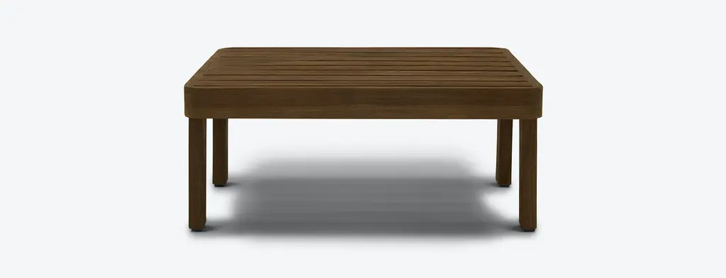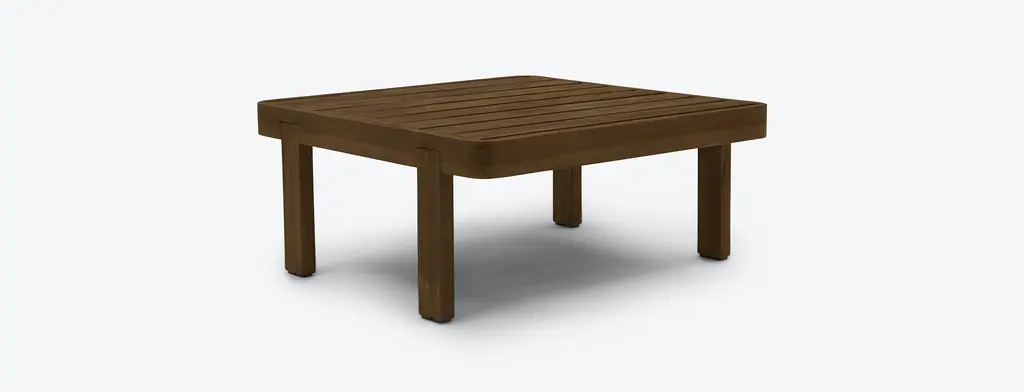 Serve up a sunset charcuterie board or just keep your SPF close at hand - the Cabana Outdoor Coffee Table can handle it all. With a modern squared design with slatted top, you’ll be bringing some serious design points into your backyard.Not only does the Cabanna’s slatted table top look great, but its certified teak wood construction means it's durable against the outdoor elements. Add it to your Cabana Outdoor Sectional for a seamless look that’s sure to impress! Details and product care +DimensionsMeasure for deliveryOverall31.5"w x 20"d x 11"hLeg8"h