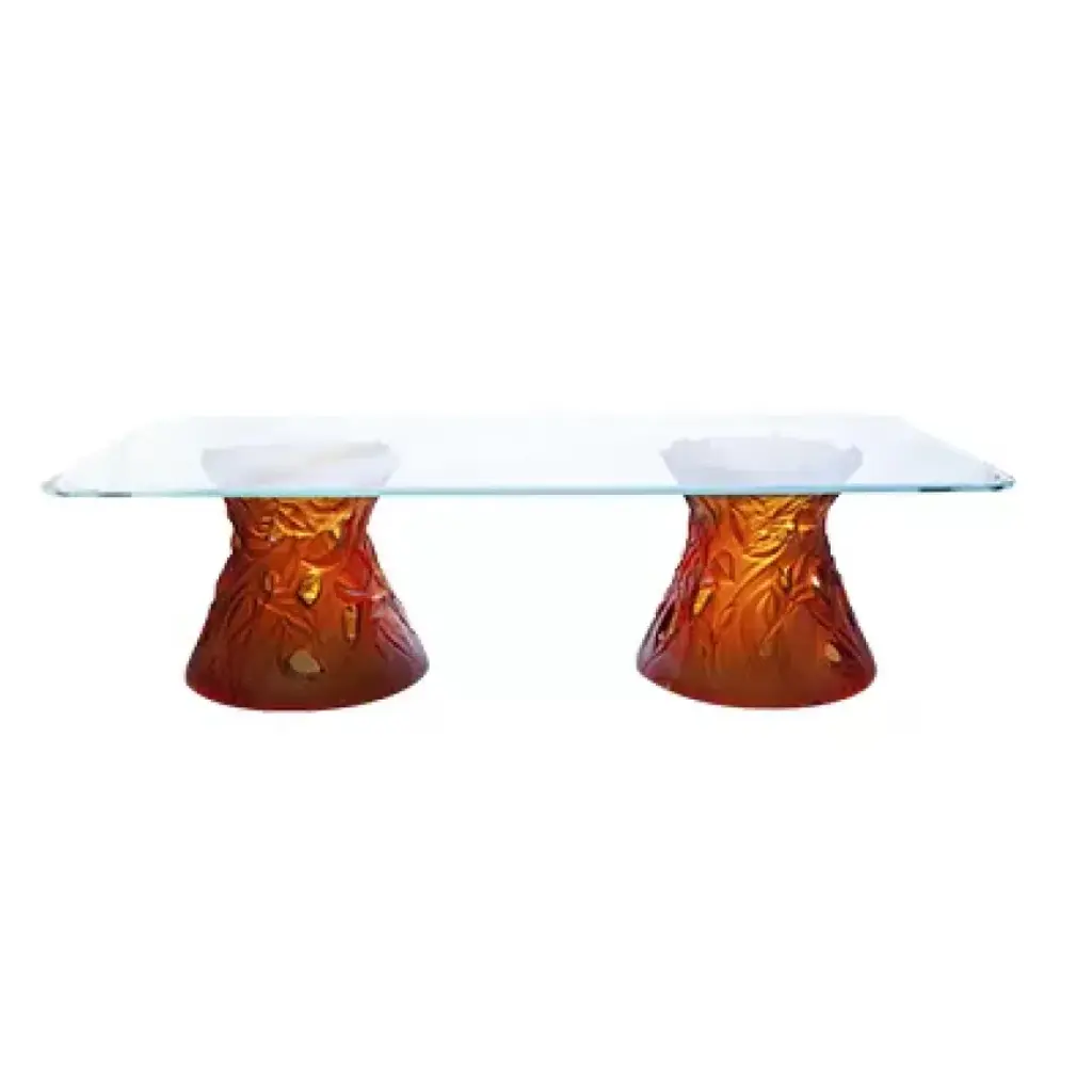 Iconic of Lalique, the Cactus table seamlessly blends into the most creative and contemporary interior design spaces. Now issued as a coffee table, its roundness and disruptive geometry celebrates the creative genius of the great Lalique glass artists. The volutes stunningly follow the rhythm of light, drowning the eye in their depths. Trained as a jeweler at the Ecole des Arts Decoratifs in Paris in the late 1880's, Rene Lalique gained recognition as an independent designer for some of the era's great jewelry houses including Cartier and Boucheron. Eventually, he turned to glassmaking, and his techniques were a triumph for the Art Deco movement. Every piece of Lalique is finely detailed and produced by hand in Alsace, France.