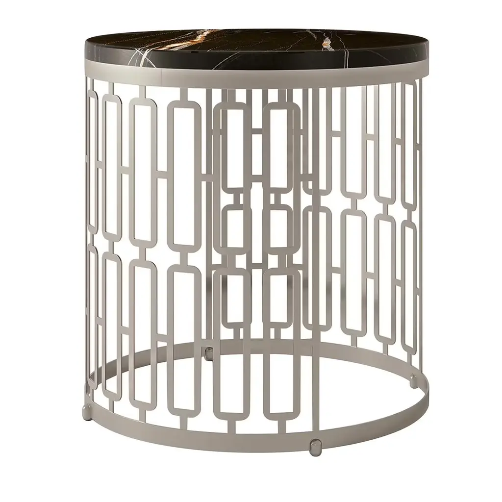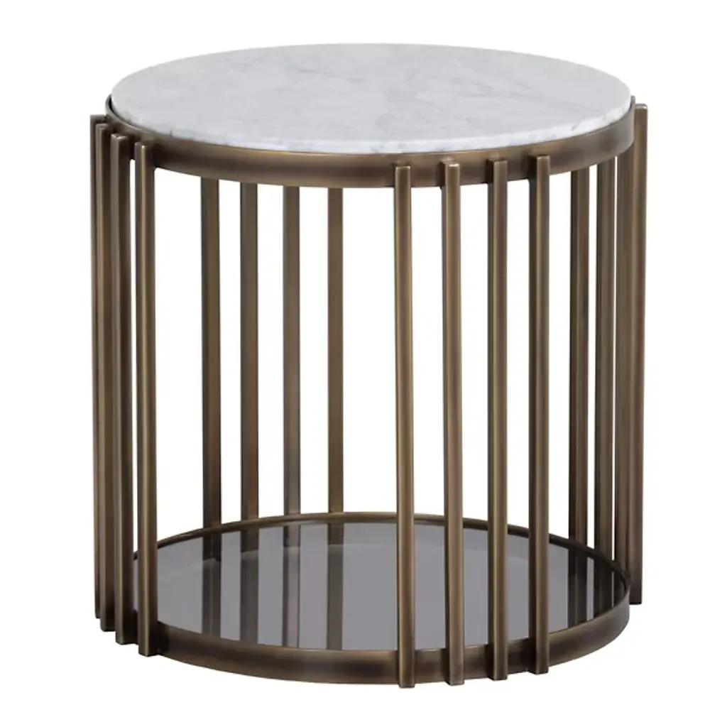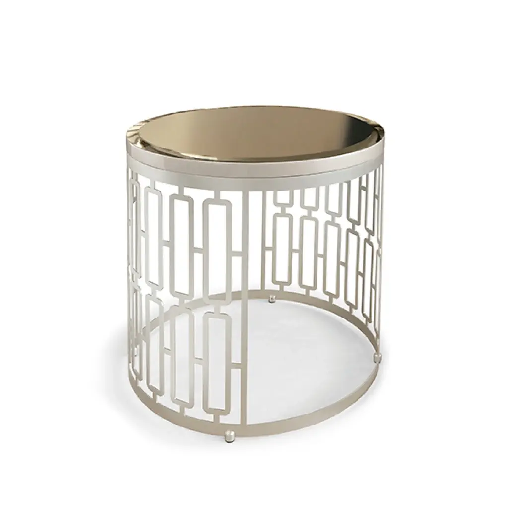 Aptly named "cage", this coffee table is a superb object of functional decor, boasting an eclectic combination of materials and a sculptural silhouette that will make a statement in a modern and sophisticated decor. Its round shape comprises a round base and top connected with vertical elements that support a smaller wooden tray under the large top in extra-clear glass. Not only the superb focal point of a living room, but also a practical display surface for everyday items or collectibles, this is a precious addition to a refined home.