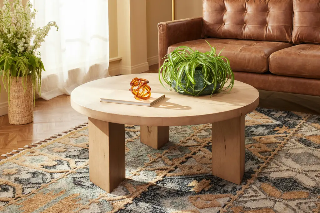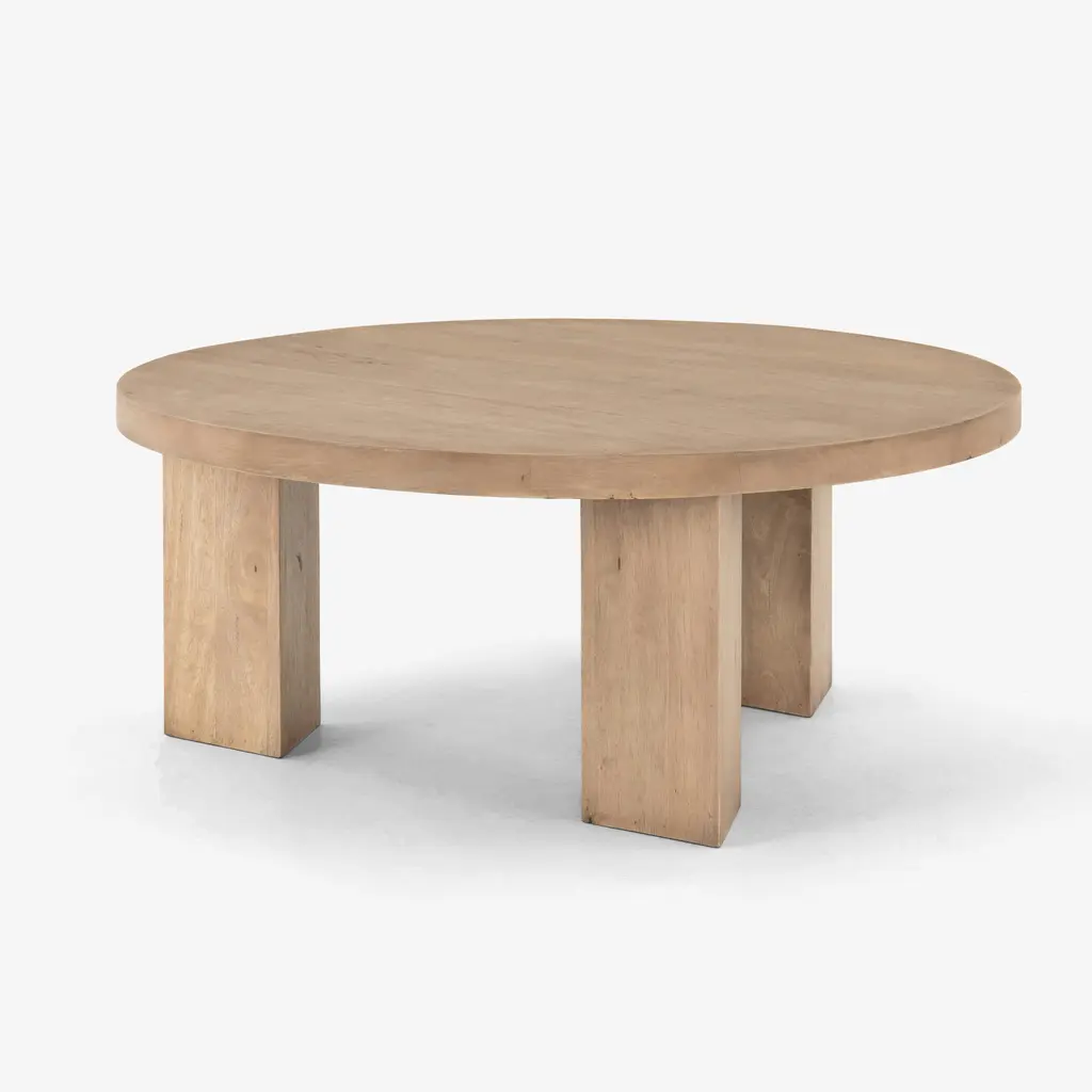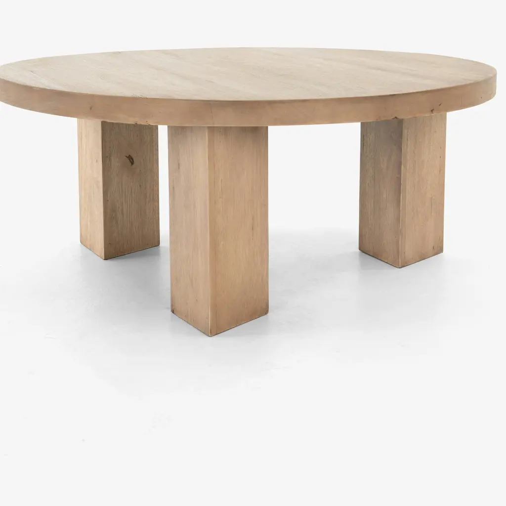 Inspired by modern European design, the Caicos Coffee Table combines a light-tone wood with a rounded top and chunky legs for a unique, yet chic addition to your living room. The modern coffee table of your dreams has arrived. It’s light-brushed wood is totally on trend while its thick pedestal legs and circular top will have your space oozing with visual interest.