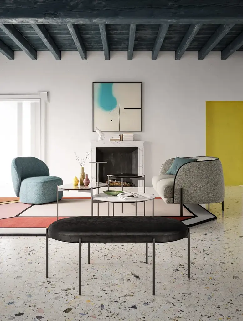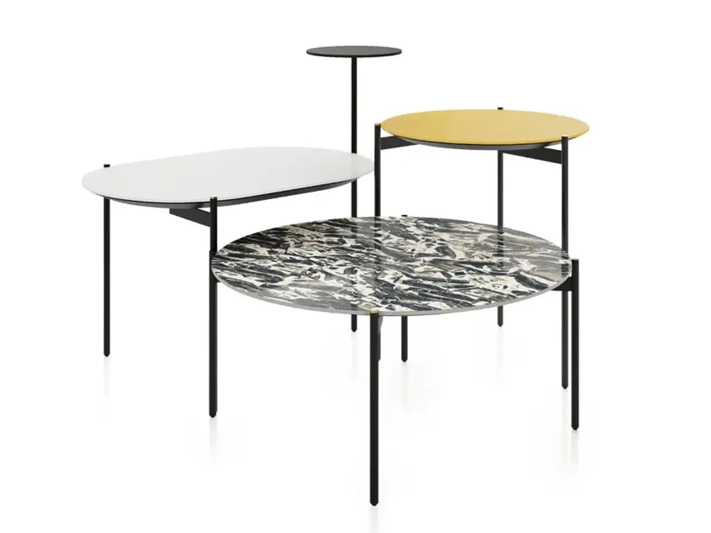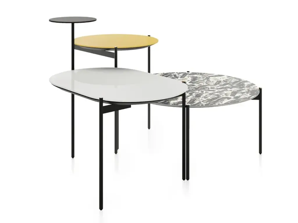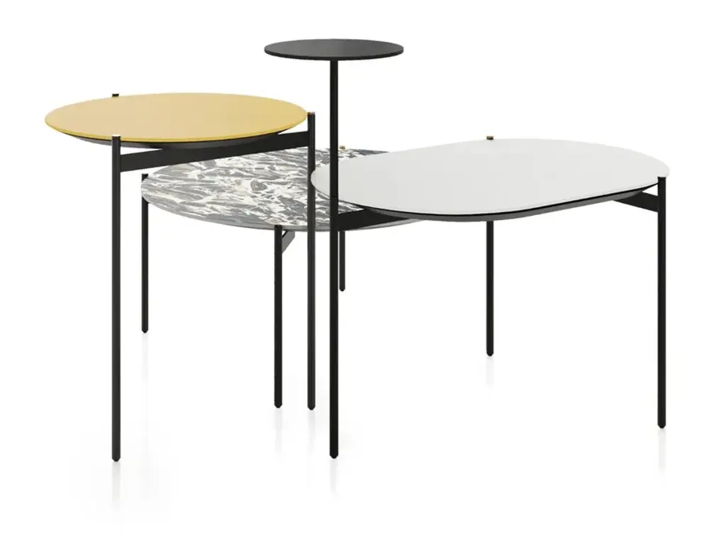 CAILLOU is a coffe table by Liu Jo.Top: 6 mm thick back-lacquered glass or ceramic top, supported by 18 mm thick MDF structural topFoot: powder-coated metal footFrom the creative vision of Liu Jo was born the custom-made living room. Craftsmanship, versatility, style and sustainability come together to enter the world of home and transform the furniture. Liujo’s living collection is a declaration of intent: new forms and customizable materials open the space to new reading keys and give life to unique pieces. The house is dressed and changed to meet all the needs of everyday life detaching from the classic nomenclatures and running on elegant lines, delicate finishes, soft fabrics and customizable colors. Not only sofas, poufs or armchairs, but design with a strong identity, free, sectional and removable, with irregular and fresh shapes that revolutionize the environment. Recognizable and iconographic in ideas, shape and finish, the pieces of furniture by Liu Jo find their reason for being in contrast: structures and rigid elements are designed to contain and embrace curves and movements, enhancing personal style and easily changing position and function.