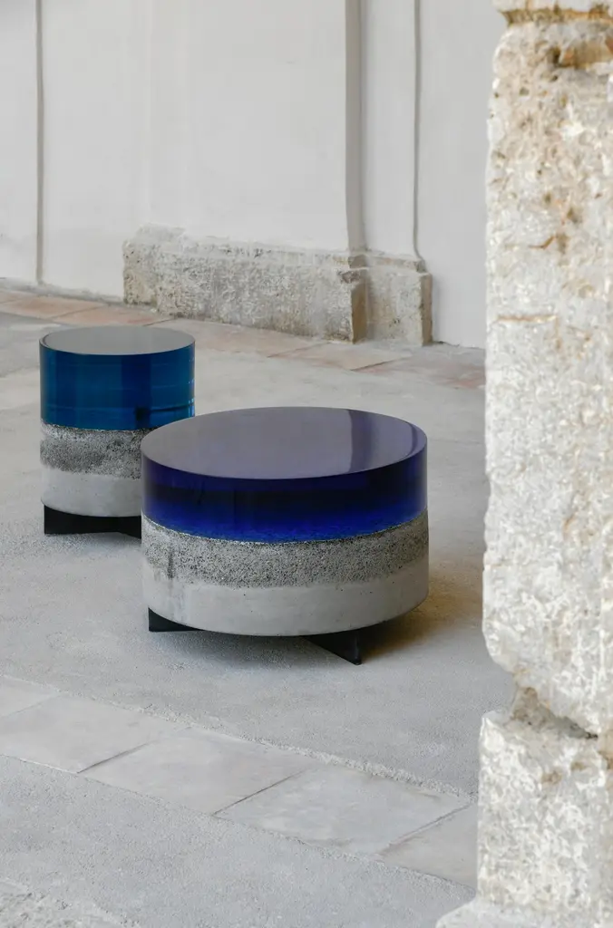 Made from a coarse concrete base covered with thick epoxy resin, Cala coffee table evokes the lacustrine landscape of Como. Resin is meticulously cast in layers to recreate a deep and shifting top, that seems to reveal the lakebed underneath. Borne by metal supports, the rounded shapes recall the smoothing action of flowing water.SIZE: Ø 30 cm, H 40 cmDraga&Aurel resin colors areabsolutely unique as they are handmade using a combination of different shades.