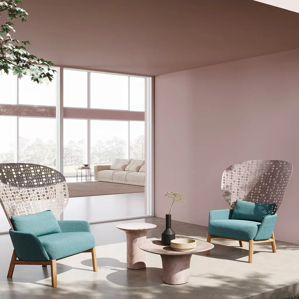 The elegant nude / blush-colored cement coffee table is crafted using a unique artisanal technique, showcasing soft, delicate gradients. The protective transparent finish is designed for outdoor use, ensuring durability while preserving the surface. Subtle color and texture variations, such as small imperfections, are part of the handmade process and do not affect the product's quality, making each piece one-of-a-kind. Perfect for adding a refined touch to any space.