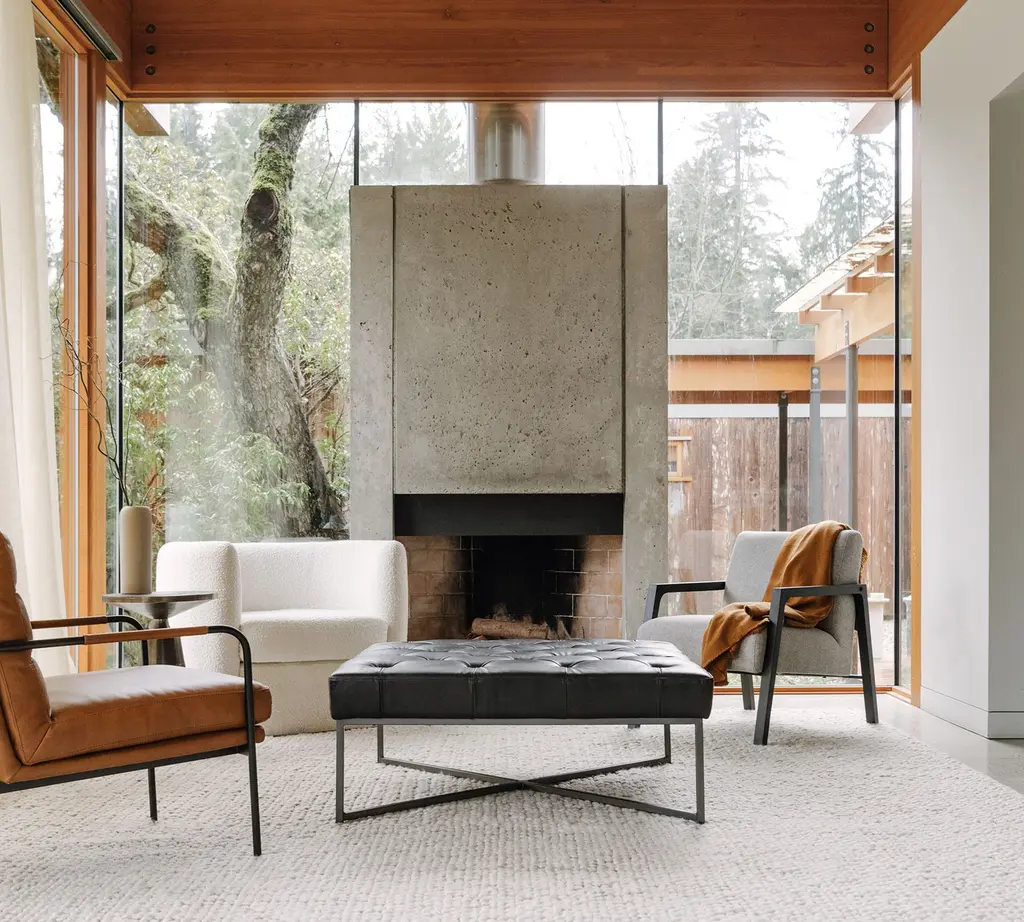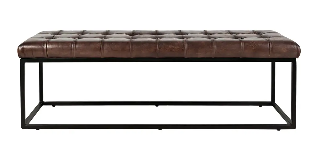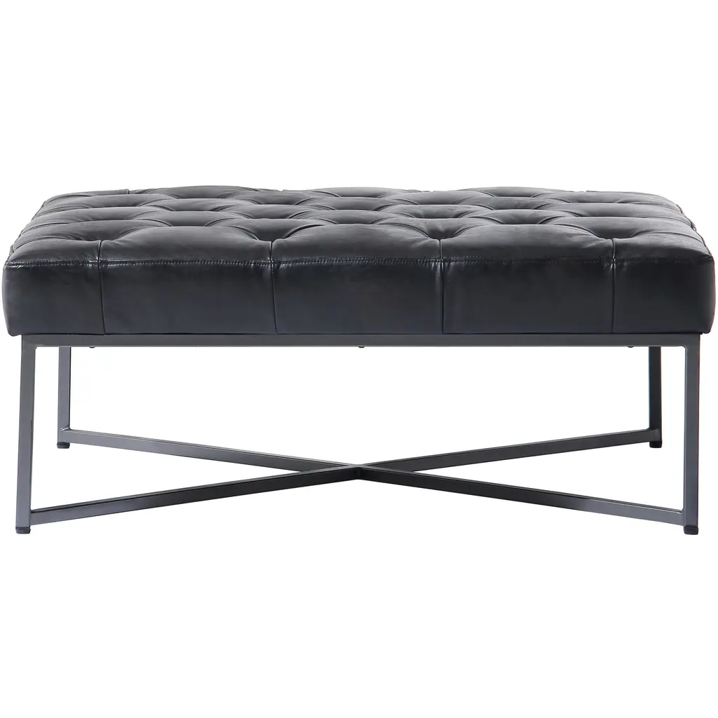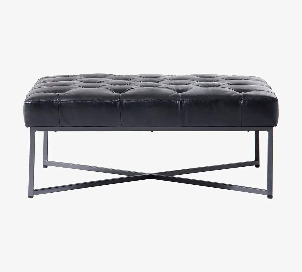 Long, low, and with plenty of surface space, this tufted leather coffee table has a modern, multipurpose design we love. Top with a tray to hold everything from beverages to remotes, use as extra seating, or prop your feet up.