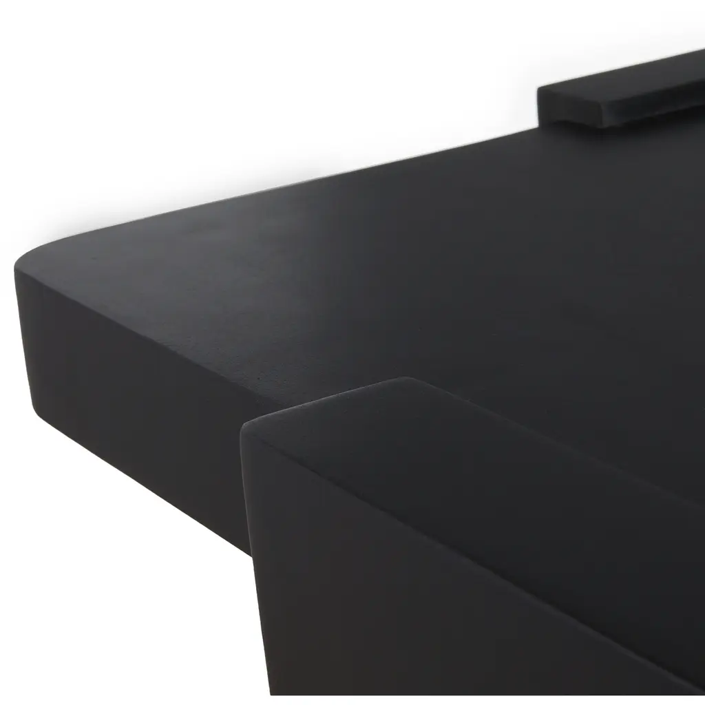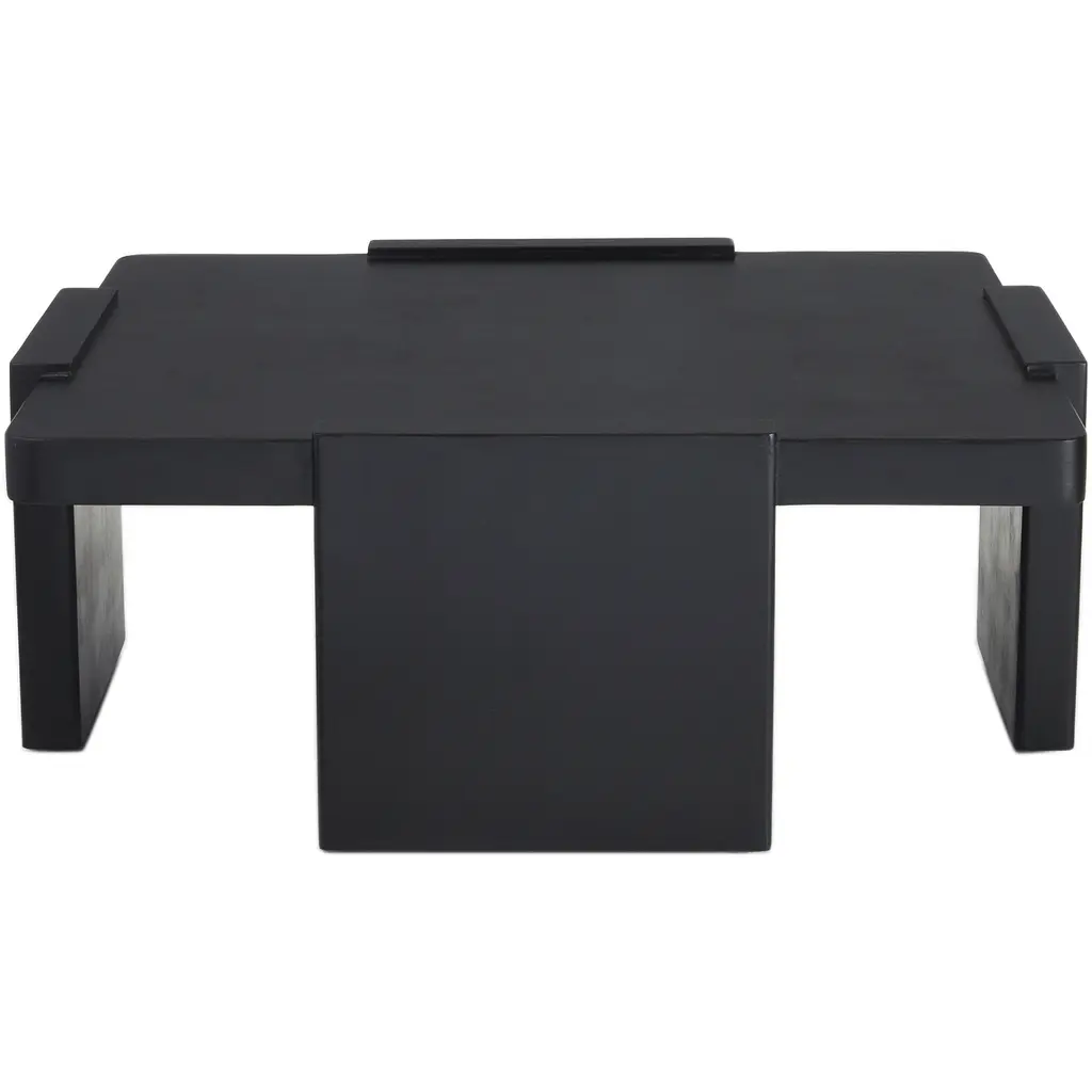 A suspended style of ebony mango wood is greater than the sum of its parts. Passing planes that serve as its support extend above the top slab to reveal an intriguing dimensionality. Rounded at the corners. Finish will vary.
