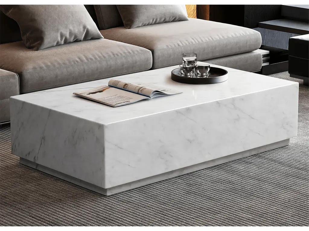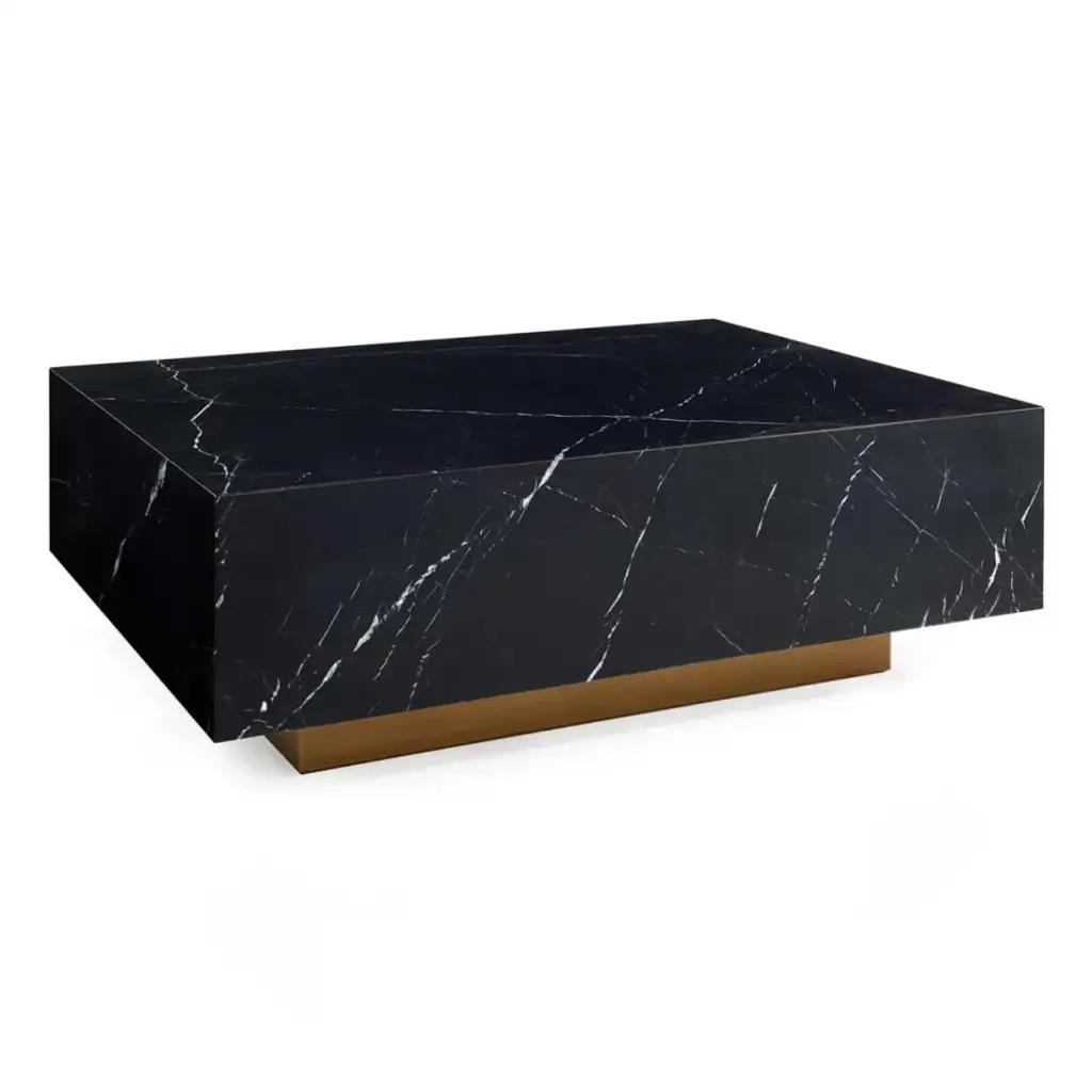 Camellia Rectangle Coffee table Dark Emperador Marble high gloss with casters.