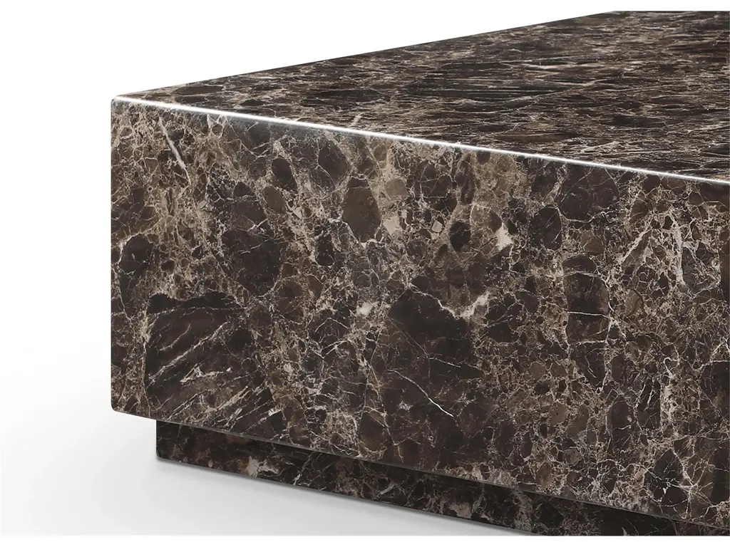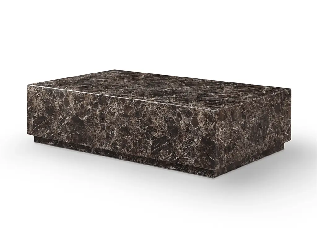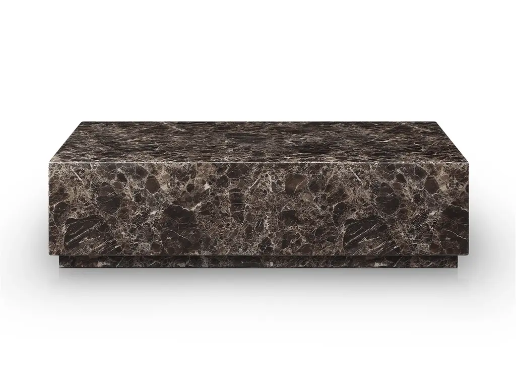 Camellia Rectangle Coffee table Dark Emperador Marble high gloss with casters.