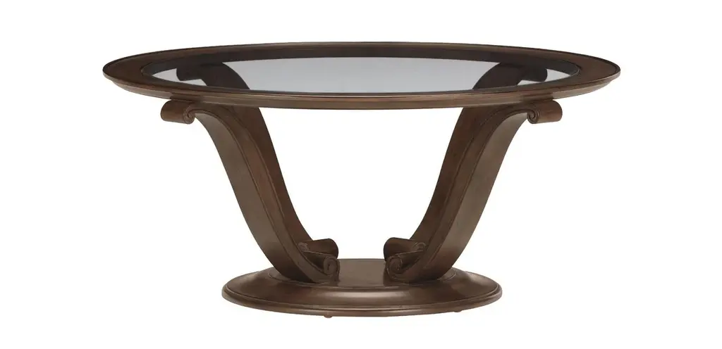 Blending neoclassical elegance with retro-inspired charm, the Camille round coffee table is a statement in glamour and craftsmanship. Expertly handcrafted in our own workshops from maple and available in the finish of your choice, this distinctive piece features intricate scrollwork detailing—each form individually shaped by hand, ensuring that no two tables are exactly alike. A tempered glass top completes the design, offering a clear view of the artful structure beneath.