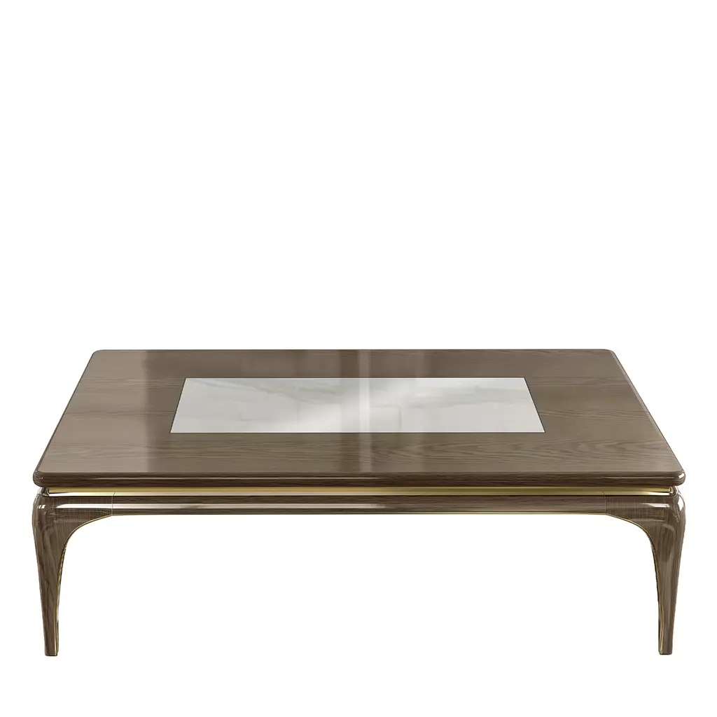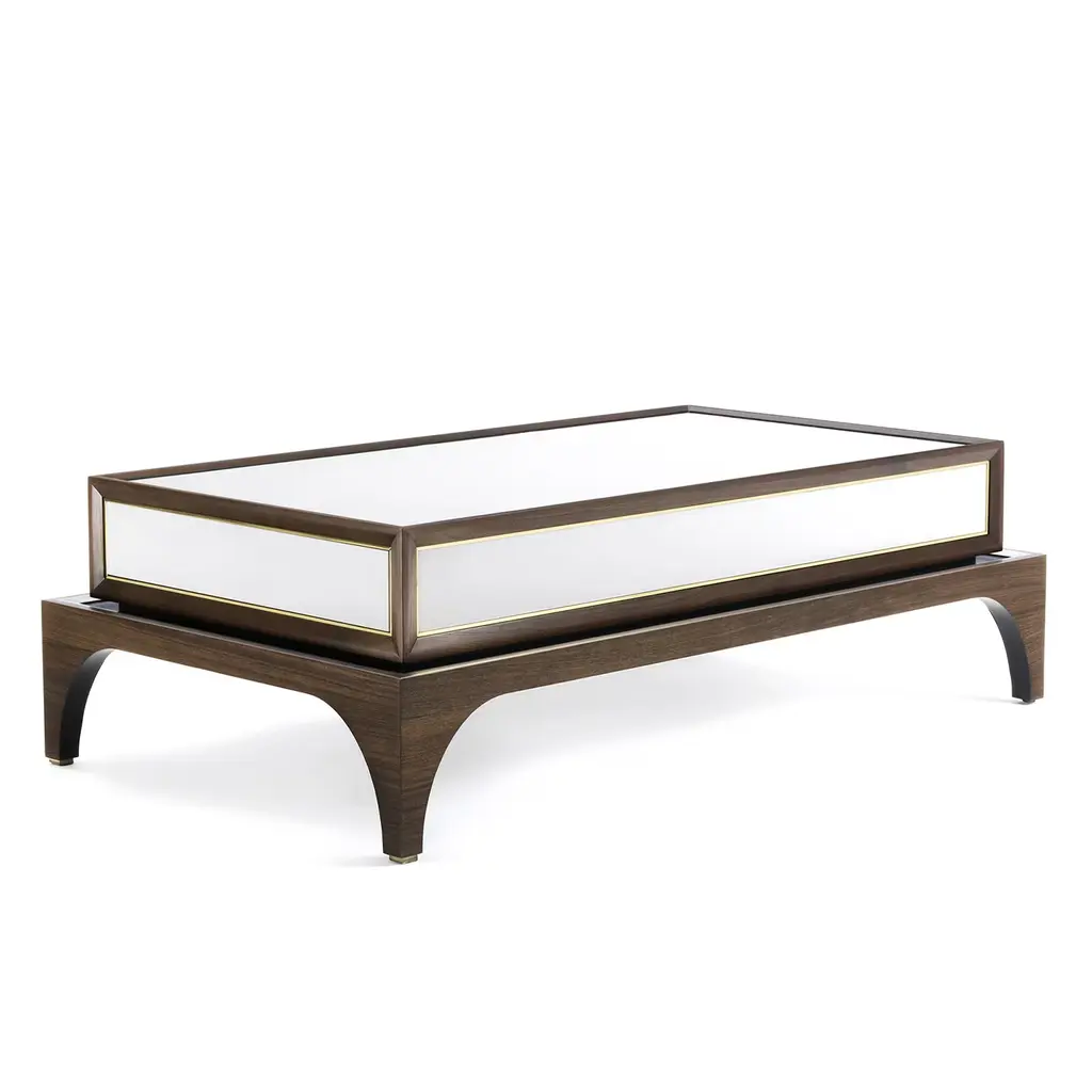 This exquisite cocktail table will make a stately accent in both classic and contemporary interiors thanks to a timeless precious allure. Handcrafted of Canaletto walnut enriched with brass details, it is provided with push-pull drawers. Also available with Canaletto walnut wood or lacquered surface and drawers, please inquire with the Concierge for further details.